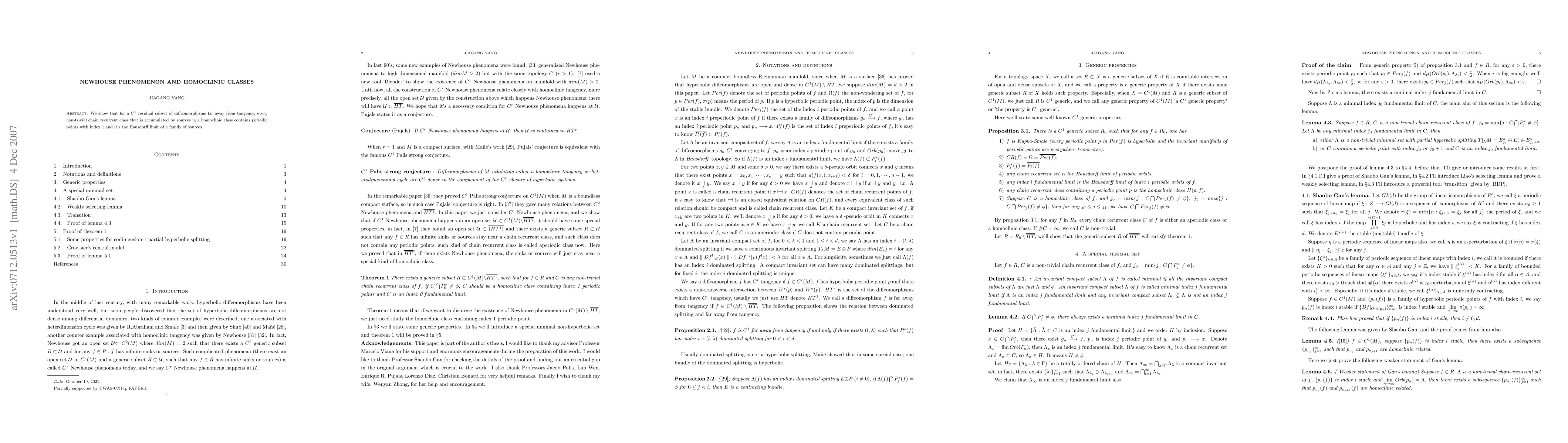 We show that for a $C^1$ residual subset of diffeomorphisms far away from tangency, every non-trivial chain recurrent class that is accumulated by sources ia a homoclinic class contains periodic points with index 1 and it's the Hausdorff limit of a family of sources.