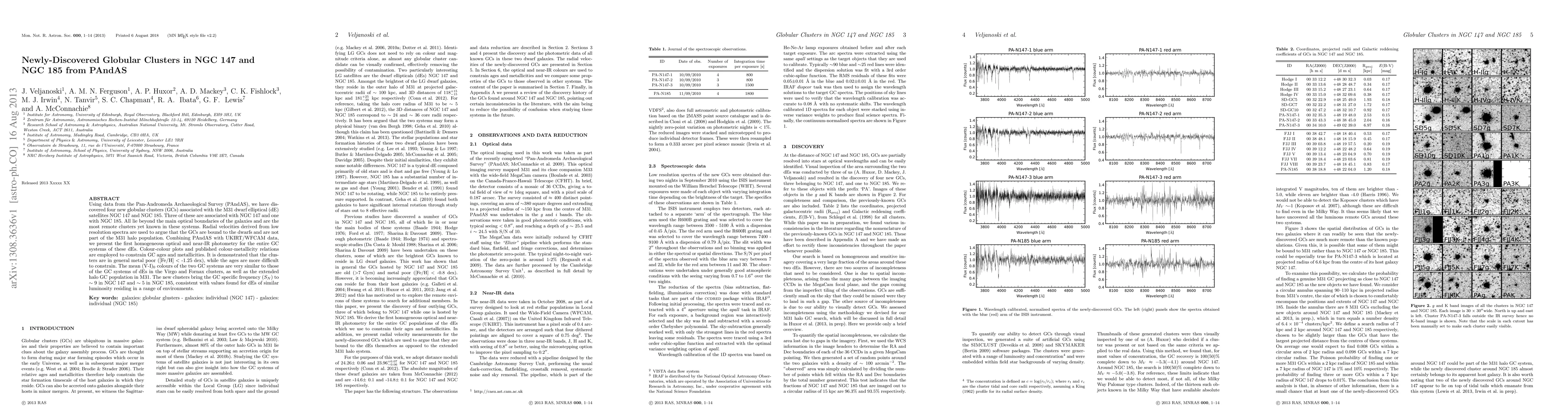 Using data from the Pan-Andromeda Archaeological Survey (PAndAS), we have discovered four new globular clusters (GCs) associated with the M31 dwarf elliptical (dE) satellites NGC 147 and NGC 185. Three of these are associated with NGC 147 and one with NGC 185. All lie beyond the main optical boundaries of the galaxies and are the most remote clusters yet known in these systems. Radial velocities derived from low resolution spectra are used to argue that the GCs are bound to the dwarfs and are not part of the M31 halo population. Combining PAndAS with UKIRT/WFCAM data, we present the first homogeneous optical and near-IR photometry for the entire GC systems of these dEs. Colour-colour plots and published colour-metallicity relations are employed to constrain GC ages and metallicities. It is demonstrated that the clusters are in general metal poor ([Fe/H] < -1.25 dex), while the ages are more difficult to constrain. The mean (V-I)$_0$ colours of the two GC systems are very similar to those of the GC systems of dEs in the Virgo and Fornax clusters, as well as the extended halo GC population in M31. The new clusters bring the GC specific frequency (S_N) to ~9 in NGC 147 and ~5 in NGC 185, consistent with values found for dEs of similar luminosity residing in a range of environments.