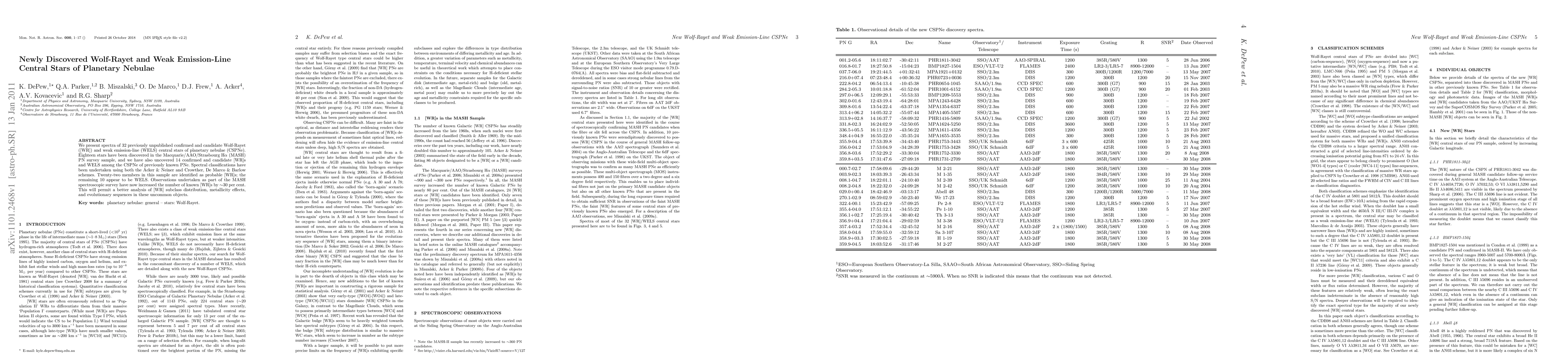 This paper presents spectra of 32 Wolf-Rayet and weak emission-line central stars of planetary nebulae, identifying 18 new discoveries from the MASH survey and 14 from previously known nebulae. The findings enhance understanding of WR subclass distribution and evolutionary sequences.