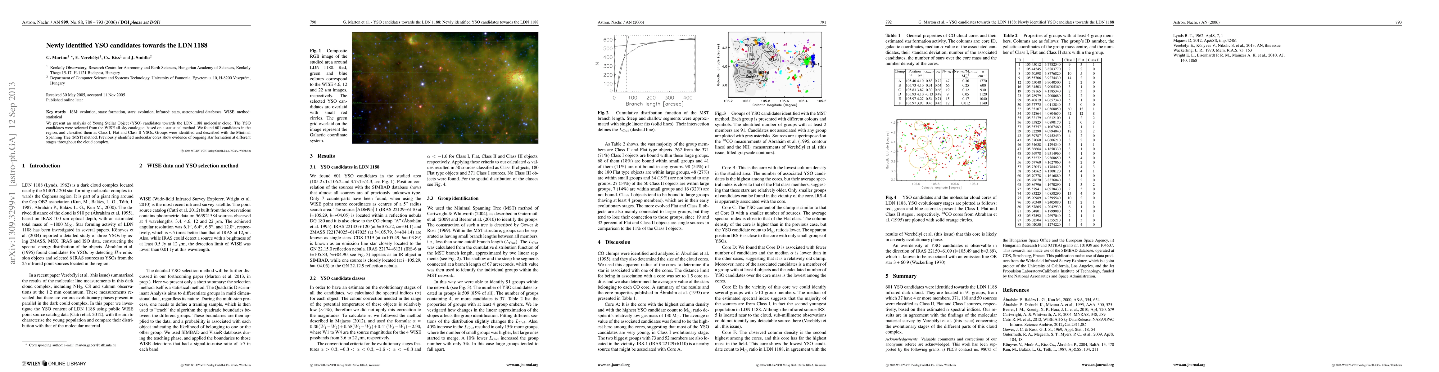 Researchers identified 601 Young Stellar Object candidates in the LDN 1188 molecular cloud, classifying them into three stages of star formation. These findings suggest ongoing star formation throughout the cloud complex.