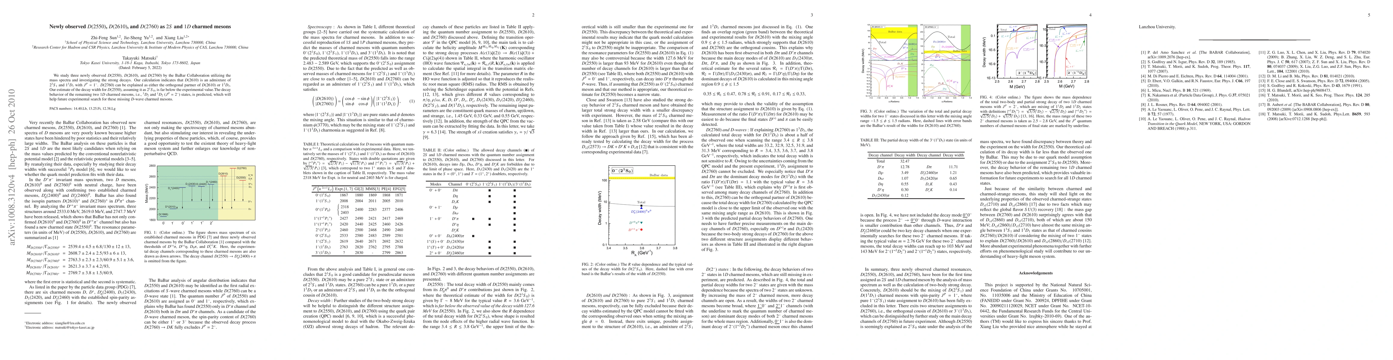 We study three newly observed D(2550), D(2610), and D(2760) by the BaBar Collaboration utilizing the mass spectra and investigating the strong decays. Our calculation indicates that D(2610) is an admixture of $2^3S_1$ and $1^3D_1$ with $J^P=1^-$. $D(2760)$ can be explained as either the orthogonal partner of D(2610) or $1^3D_3$. Our estimate of the decay width for $D(2550)$, assuming it as $2^1S_0$, is far below the experimental value. the threshold effect because the strong decay of $D(2550)\to D_0^*\pi$ is forbidden.} The decay behavior of the remaining two 1D charmed mesons, i.e., $^3D_2$ and $^1D_2$ ($J^P=2^-$) states, is predicted, which will help future experimental search for these missing $D$-wave charmed mesons.