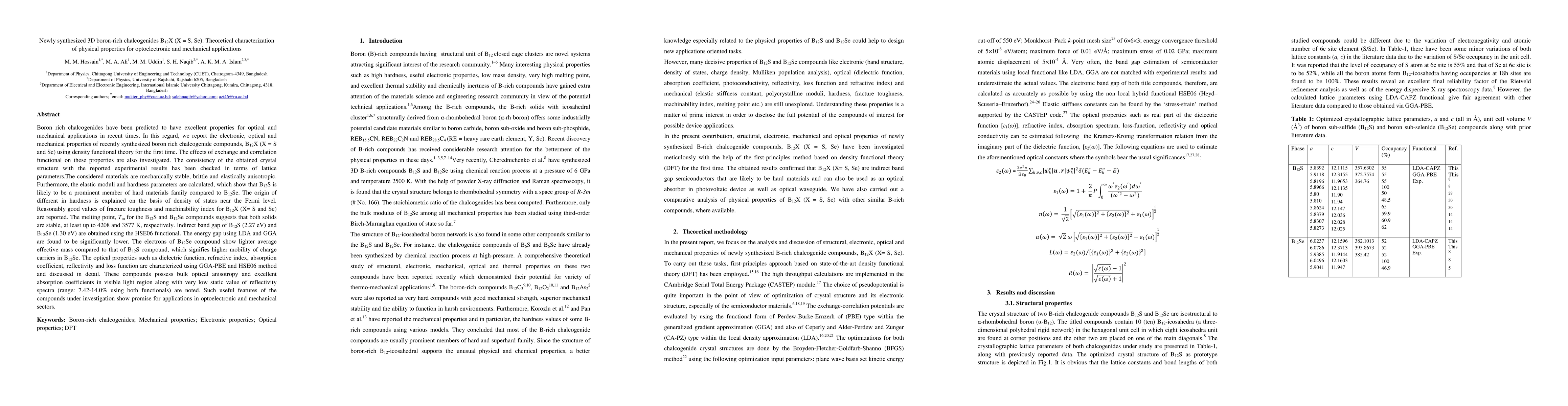 This paper reports the electronic, optical, and mechanical properties of newly synthesized boron-rich chalcogenides B12X (X = S, Se) using density functional theory. The materials are mechanically stable and exhibit anisotropic properties, with B12S showing higher hardness and better optical absorption in the visible light region compared to B12Se.