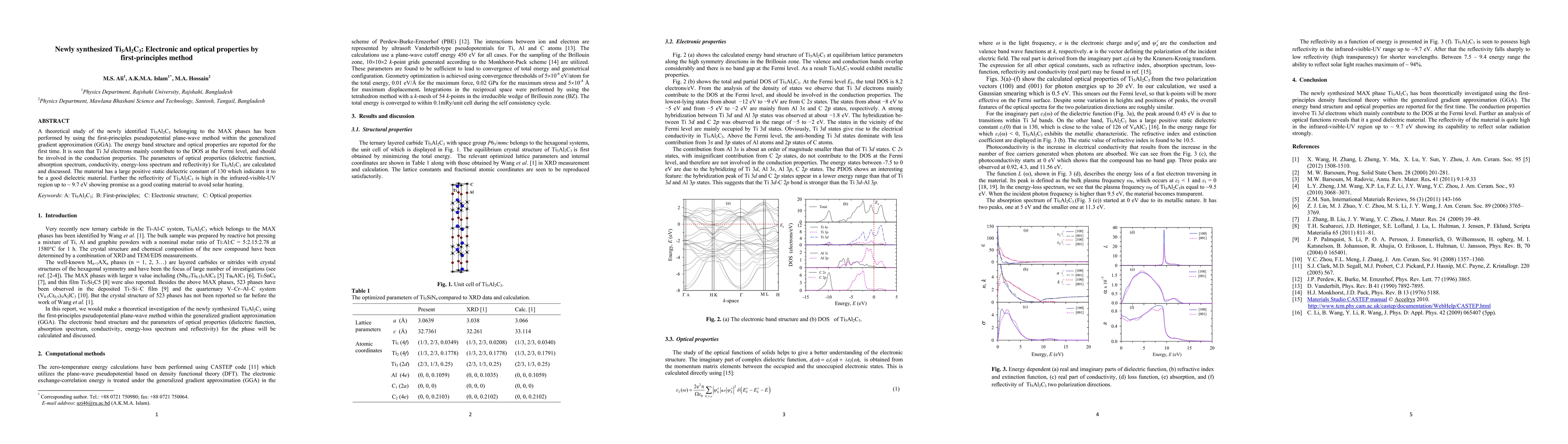 This study investigates the electronic and optical properties of the newly synthesized Ti5Al2C3 MAX phase using first-principles calculations. The material exhibits high reflectivity and a large static dielectric constant, suggesting it could be a good dielectric and coating material.