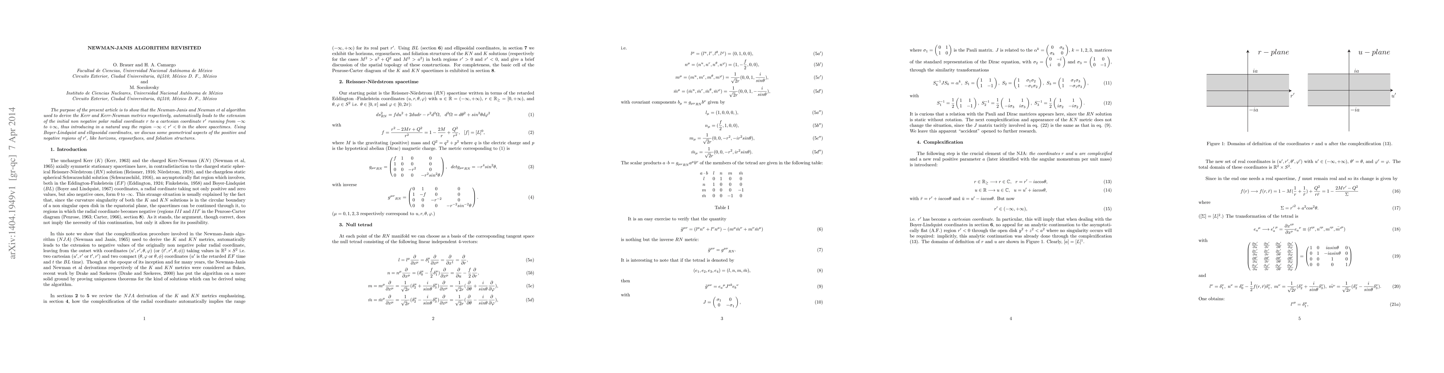 The Newman-Janis algorithm is revisited to demonstrate its inherent extension of the polar radial coordinate r to a cartesian coordinate r', introducing the region -\infty < r' < 0 in Kerr and Kerr-Newman spacetimes. The geometrical aspects of these regions, including horizons and ergosurfaces, are analyzed using Boyer-Lindquist and ellipsoidal coordinates.
