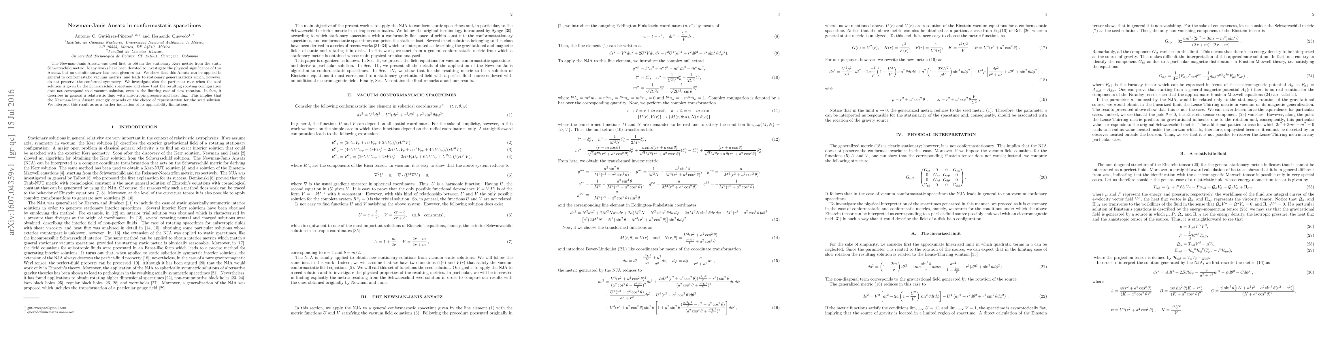 The Newman-Janis Ansatz, originally used to derive the Kerr metric from Schwarzschild, is shown to apply to conformastatic vacuum metrics, yielding stationary generalizations that lose conformal symmetry. When applied to Schwarzschild, the resulting rotating configuration describes a relativistic fluid with anisotropic pressure and heat flux, indicating limitations in the Ansatz's applicability.