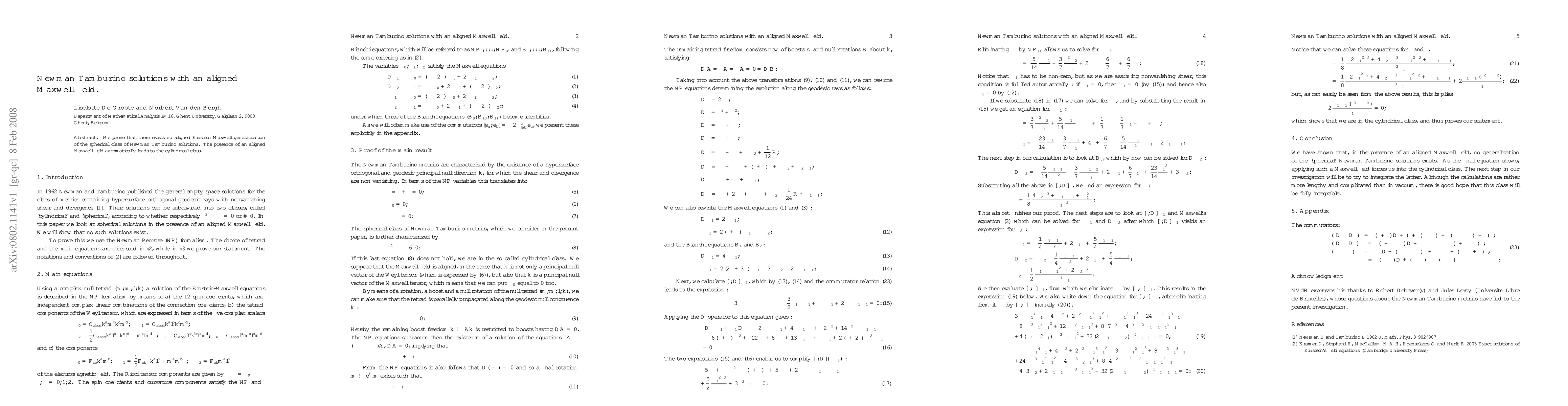 Researchers prove that adding an aligned Maxwell field to Einstein's generalization of spherical Newman Tamburino solutions leads to cylindrical class solutions, showing no such solutions exist in the spherical class.
