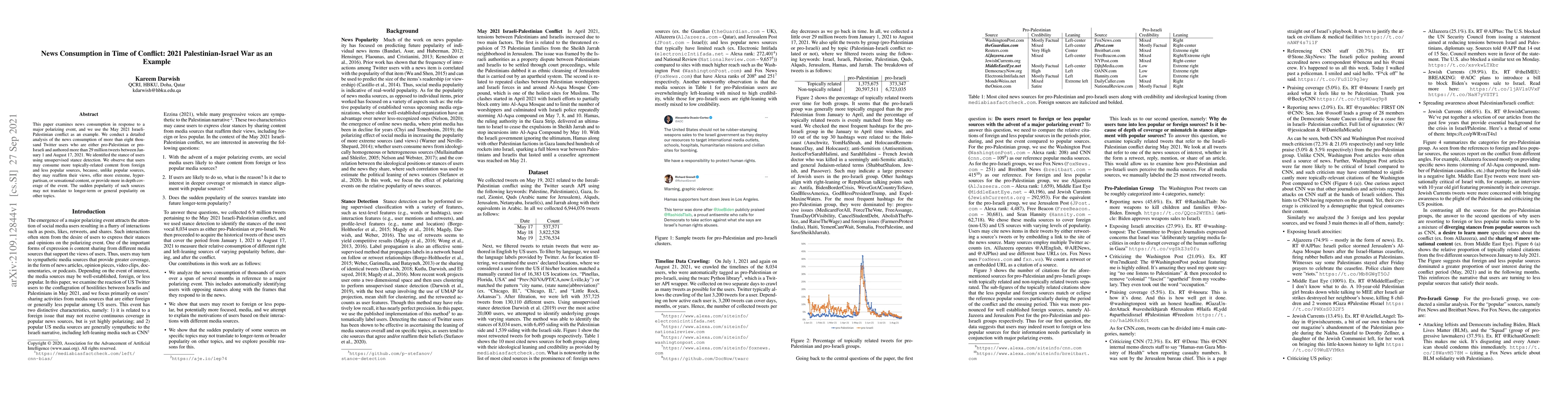 This study analyzes news consumption patterns among Twitter users during the 2021 Israeli-Palestinian conflict, finding that users often turn to less popular, foreign sources for hyper-partisan content that reaffirms their views, though this trend does not necessarily extend to broader popularity.