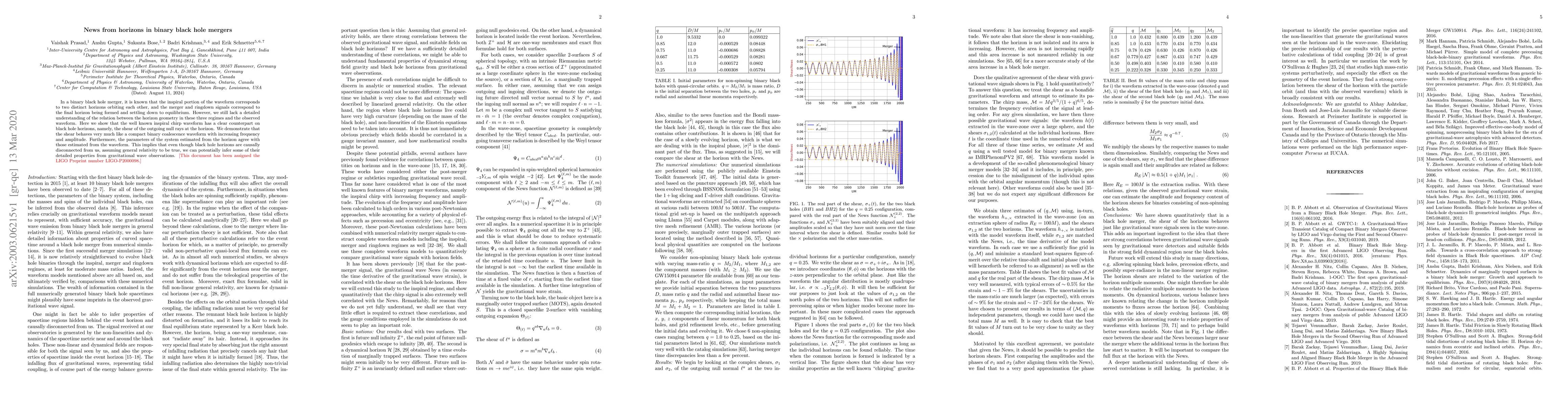 This paper reveals that the shear of outgoing null rays at black hole horizons during a binary merger closely mirrors the inspiral waveform, suggesting that gravitational wave observations can infer detailed properties of black hole horizons, despite their causal disconnection. The parameters estimated from the horizon geometry align with those from the waveform, supporting general relativity's predictions.