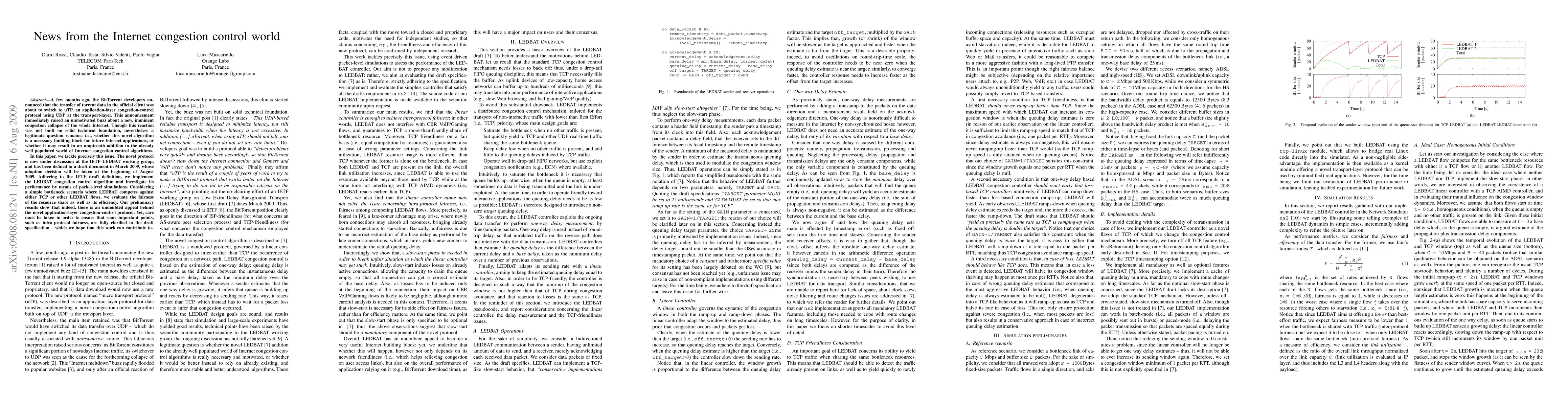 A few months ago, the BitTorrent developers announced that the transfer of torrent data in the official client was about to switch to uTP, an application-layer congestion-control protocol using UDP at the transport-layer. This announcement immediately raised an unmotivated buzz about a new, imminent congestion collapse of the whole Internet. Though this reaction was not built on solid technical foundation, nevertheless a legitimate question remains: i.e., whether this novel algorithm is a necessary building block for future Internet applications, or whether it may result in an umpteenth addition to the already well populated world of Internet congestion control algorithms. In this paper, we tackle precisely this issue. The novel protocol is now under discussion at the IETF LEDBAT working group, and has been defined in a draft document in March 2009, whose adoption decision will be taken at the beginning of August 2009. Adhering to the IETF draft definition, we implement the LEDBAT congestion control algorithm and investigate its performance by means of packet-level simulations. Considering a simple bottleneck scenario where LEDBAT competes against either TCP or other LEDBAT flows, we evaluate the fairness of the resource share as well as its efficiency. Our preliminary results show that indeed, there is an undoubted appeal behind the novel application-layer congestion-control protocol. Yet, care must be taken in order to ensure that some important points, such as intra-protocol fairness, are fully clarified in the draft specification -- which we hope that this work can contribute to.
