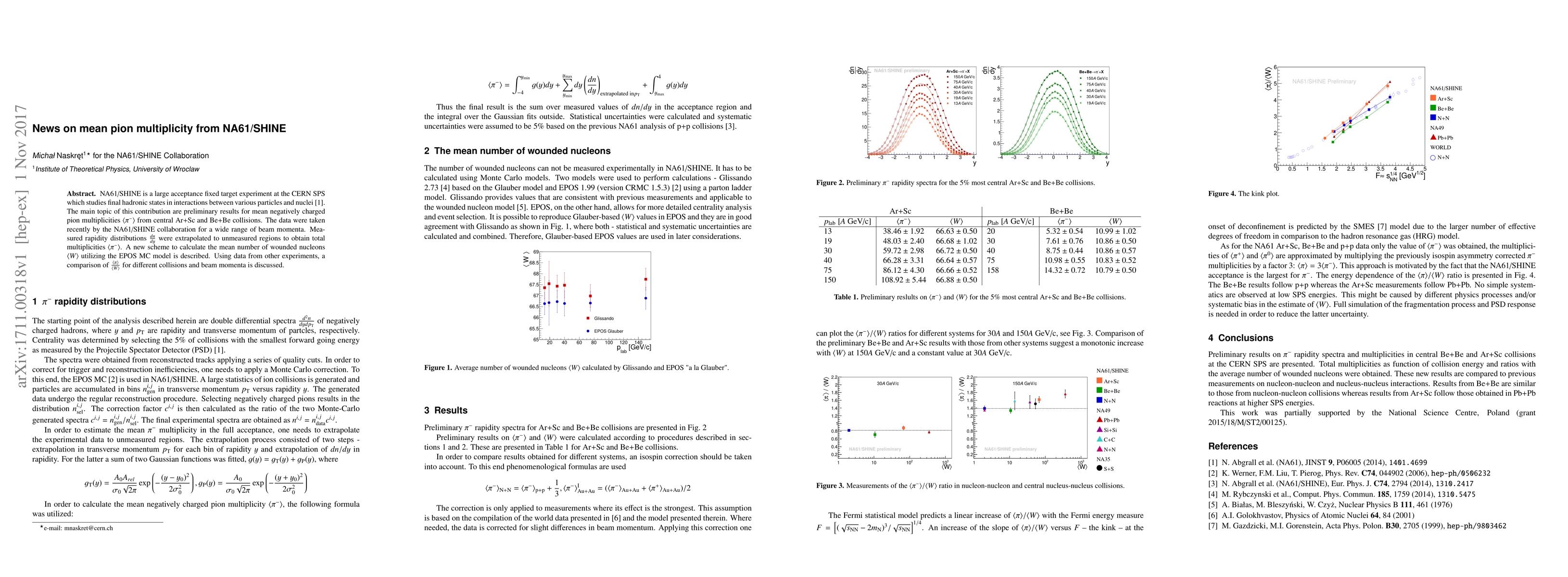 Researchers from NA61/SHINE report preliminary results on mean pion multiplicities in Ar+Sc and Be+Be collisions at the CERN SPS, using a new method to calculate wounded nucleons.