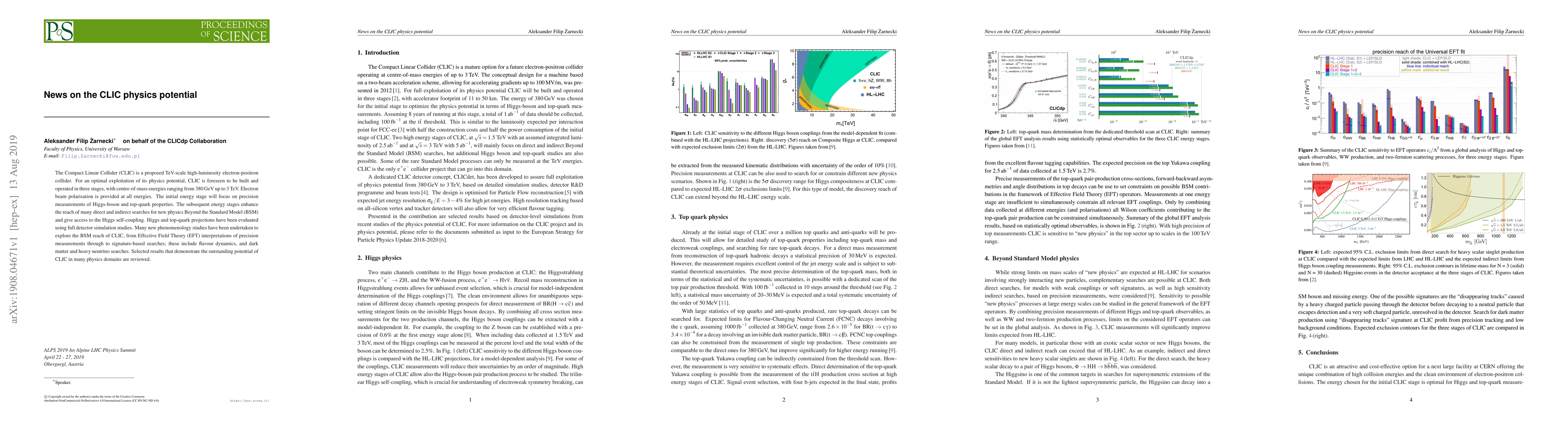 The CLIC project aims to build a high-luminosity electron-positron collider in three stages, exploring Higgs and top-quark properties at lower energies and probing new physics beyond the Standard Model at higher energies. CLIC's potential is demonstrated through precision measurements and extensive searches for phenomena beyond the Standard Model.