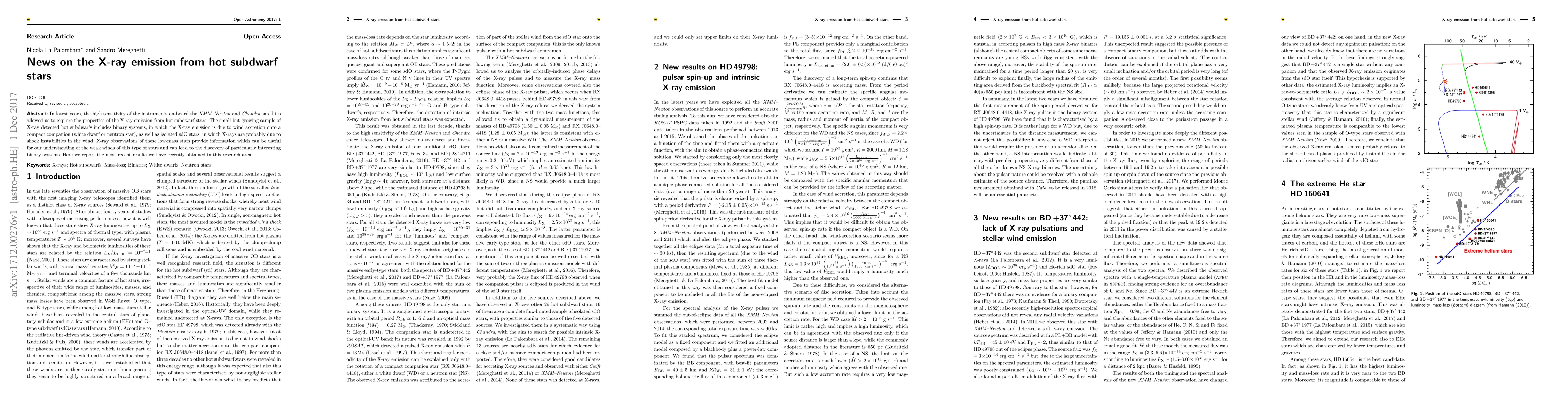 In latest years, the high sensitivity of the instruments on-board the XMM-Newton and Chandra satellites allowed us to explore the properties of the X-ray emission from hot subdwarf stars. The small but growing sample of X-ray detected hot subdwarfs includes binary systems, in which the X-ray emission is due to wind accretion onto a compact companion (white dwarf or neutron star), as well as isolated sdO stars, in which X-rays are probably due to shock instabilities in the wind. X-ray observations of these low-mass stars provide information which can be useful for our understanding of the weak winds of this type of stars and can lead to the discovery of particularly interesting binary systems. Here we report the most recent results we have recently obtained in this research area.