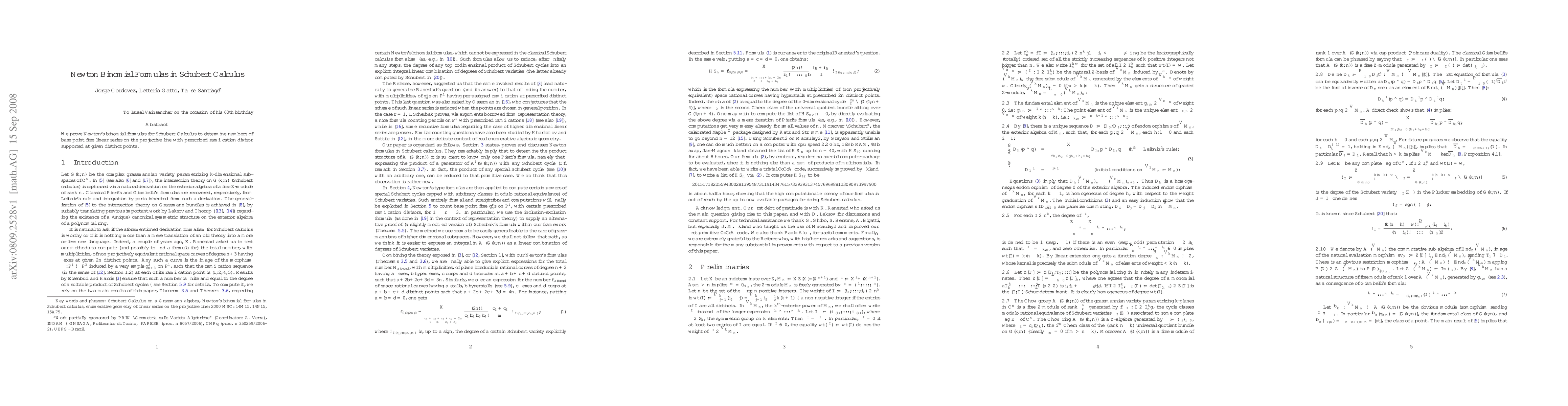 We prove Newton's binomial formulas for Schubert Calculus to determine numbers of base point free linear series on the projective line with prescribed ramification divisor supported at given distinct points.