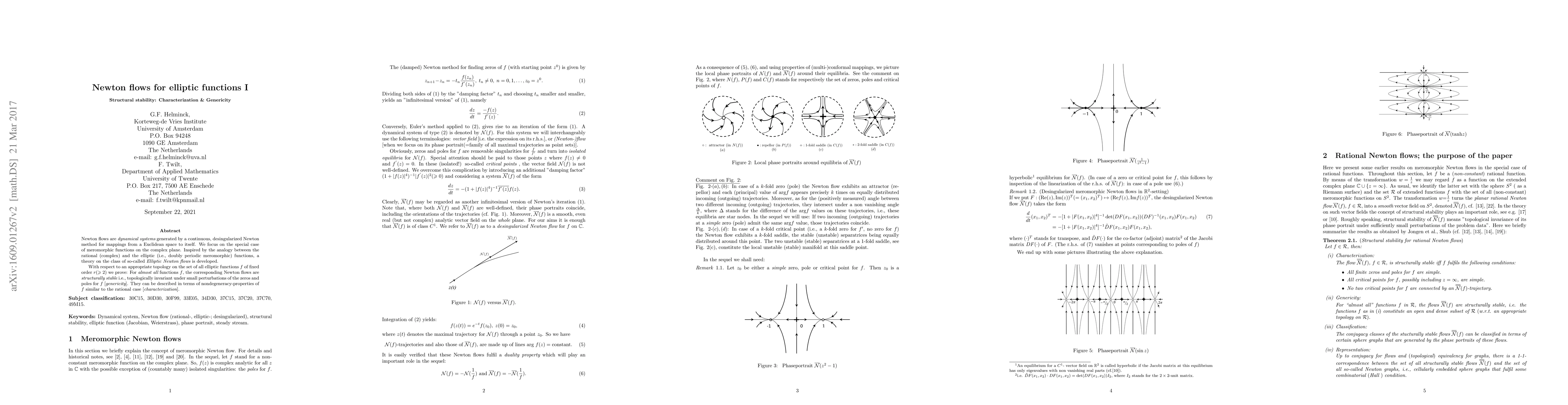 This paper explores Newton flows generated by a continuous, desingularized Newton method for elliptic functions on the complex plane, establishing structural stability and genericity for almost all such functions. The authors prove that these flows are topologically invariant under small perturbations of zeros and poles, characterized by nondegeneracy properties akin to those in the rational case.