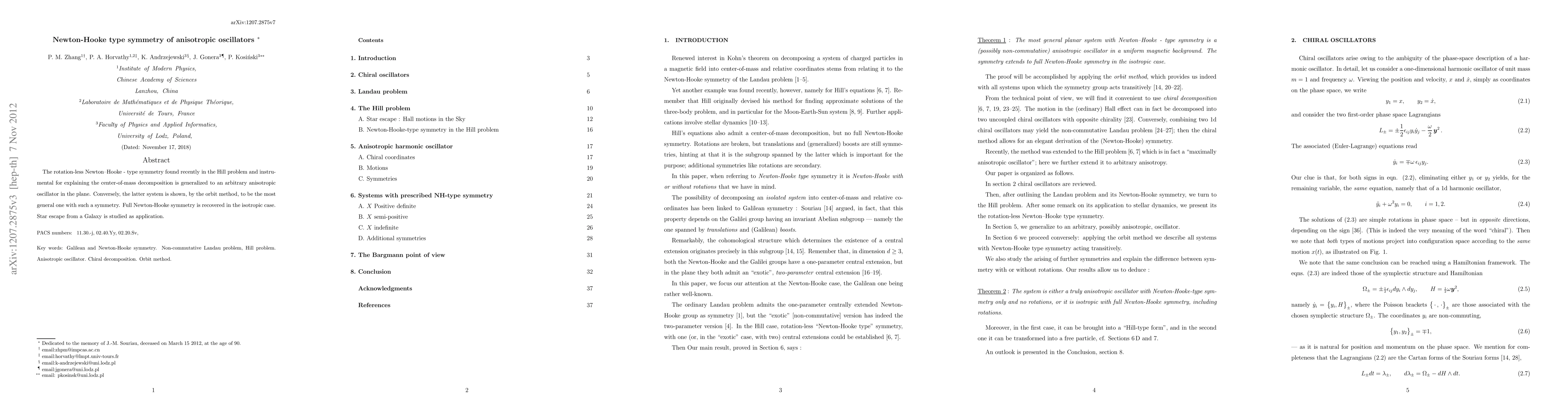 This research generalizes the Newton-Hooke symmetry to anisotropic oscillators in a plane, revealing it as the most general system with such symmetry. The isotropic case fully recovers the full Newton-Hooke symmetry, with an application to star escape from galaxies.