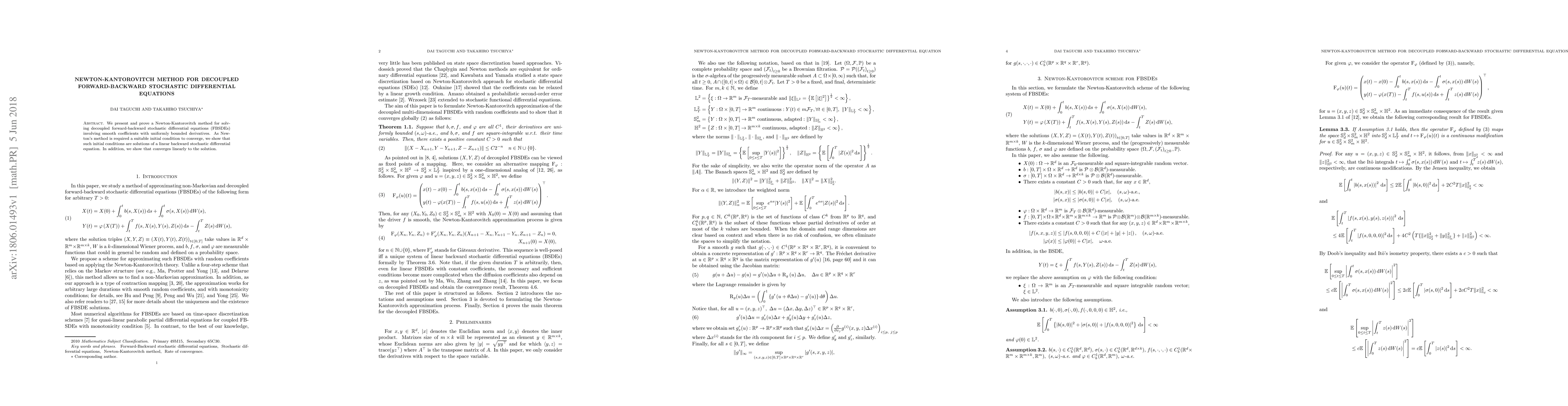 This paper introduces a Newton-Kantorovitch method for solving decoupled forward-backward stochastic differential equations (FBSDEs) with smooth coefficients. It demonstrates that the method converges linearly and identifies suitable initial conditions derived from linear backward stochastic differential equations.