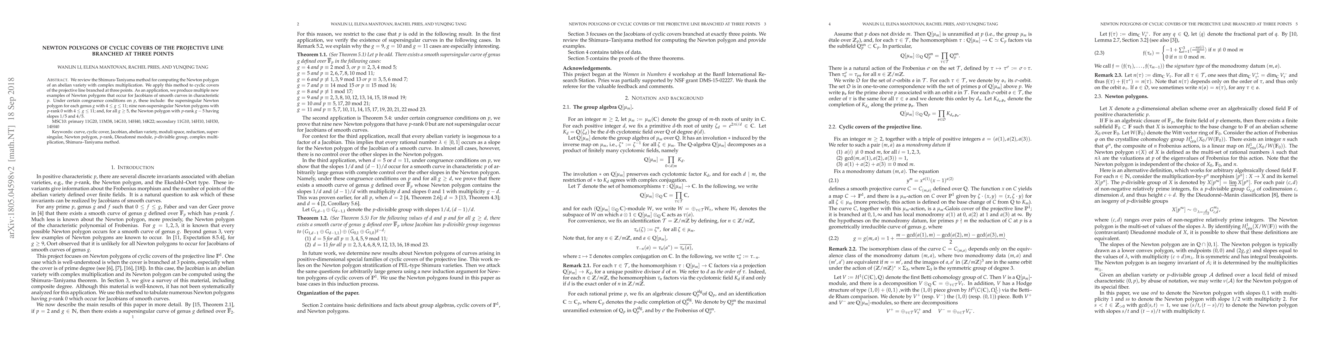 We review the Shimura-Taniyama method for computing the Newton polygon of an abelian variety with complex multiplication. We apply this method to cyclic covers of the projective line branched at three points. As an application, we produce multiple new examples of Newton polygons that occur for Jacobians of smooth curves in characteristic $p$. Under certain congruence conditions on $p$, these include: the supersingular Newton polygon for each genus $g$ with $4 \leq g \leq 11$; nine non-supersingular Newton polygons with $p$-rank $0$ with $4 \leq g \leq 11$; and, for all $g \geq 5$, the Newton polygon with $p$-rank $g-5$ having slopes $1/5$ and $4/5$.