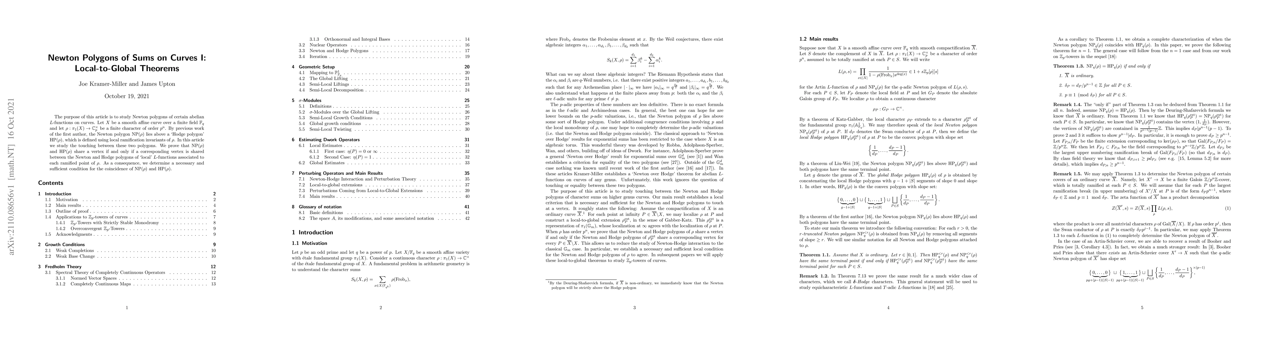 Researchers study Newton polygons of abelian L-functions on curves, showing that the touching between these polygons is determined by local ramification invariants, and provides a necessary and sufficient condition for their coincidence.