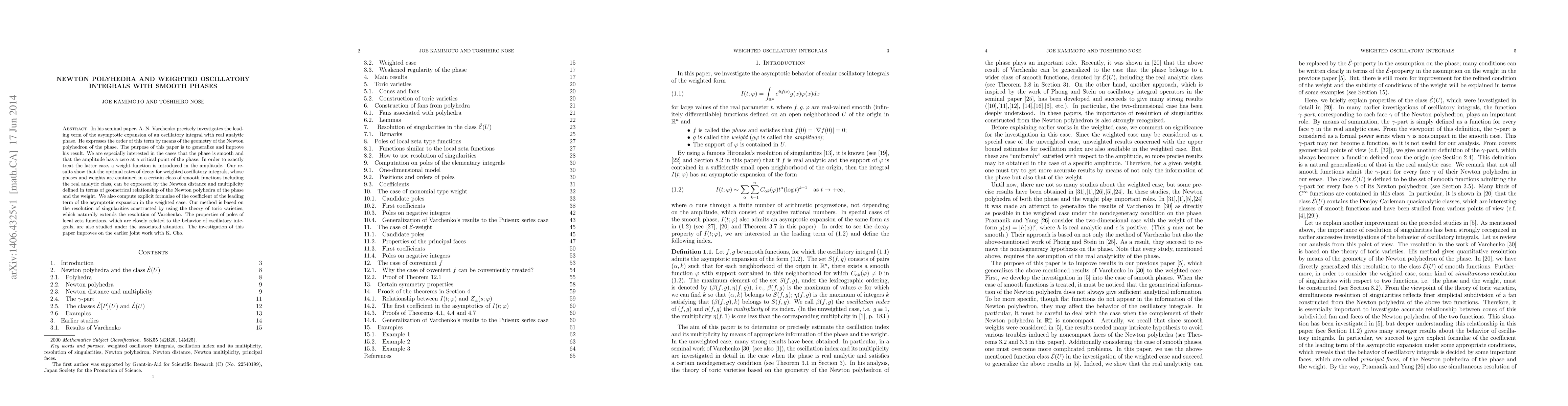 This paper generalizes and improves A. N. Varchenko's results on the leading term of the asymptotic expansion of oscillatory integrals with smooth phases, introducing a weight function to handle cases where the amplitude has a zero. The optimal decay rates for these integrals are expressed using the Newton distance and multiplicity derived from the geometry of Newton polyhedra.