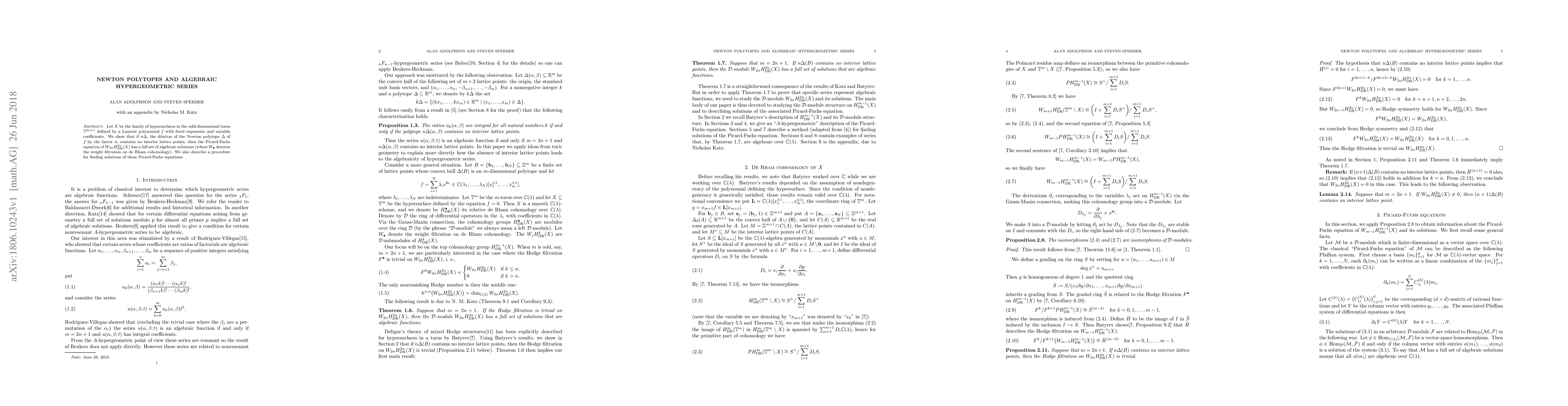 This paper studies hypersurfaces in odd-dimensional tori and shows that a specific condition on Newton polytopes leads to a full set of algebraic solutions for certain Picard-Fuchs equations, with implications for algebraic hypergeometric series.