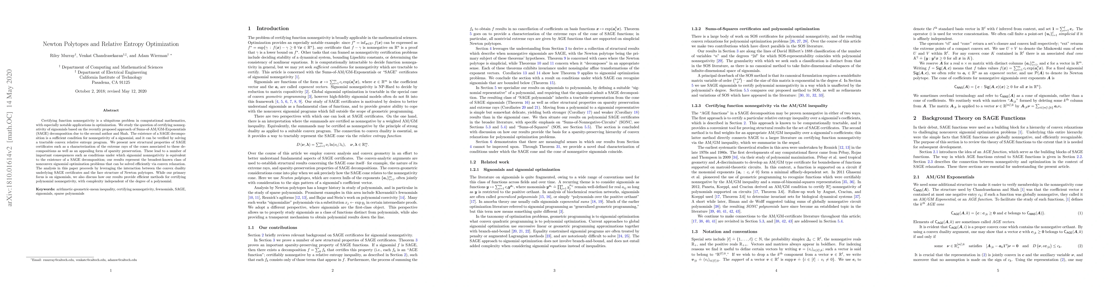 This paper explores certifying nonnegativity of signomials using the Sums-of-AM/GM-Exponentials (SAGE) decomposition, showing that its existence can be verified via a tractable convex relative entropy program. It reveals structural properties of SAGE certificates, leading to efficient solutions for a broad class of nonconvex signomial optimization problems.