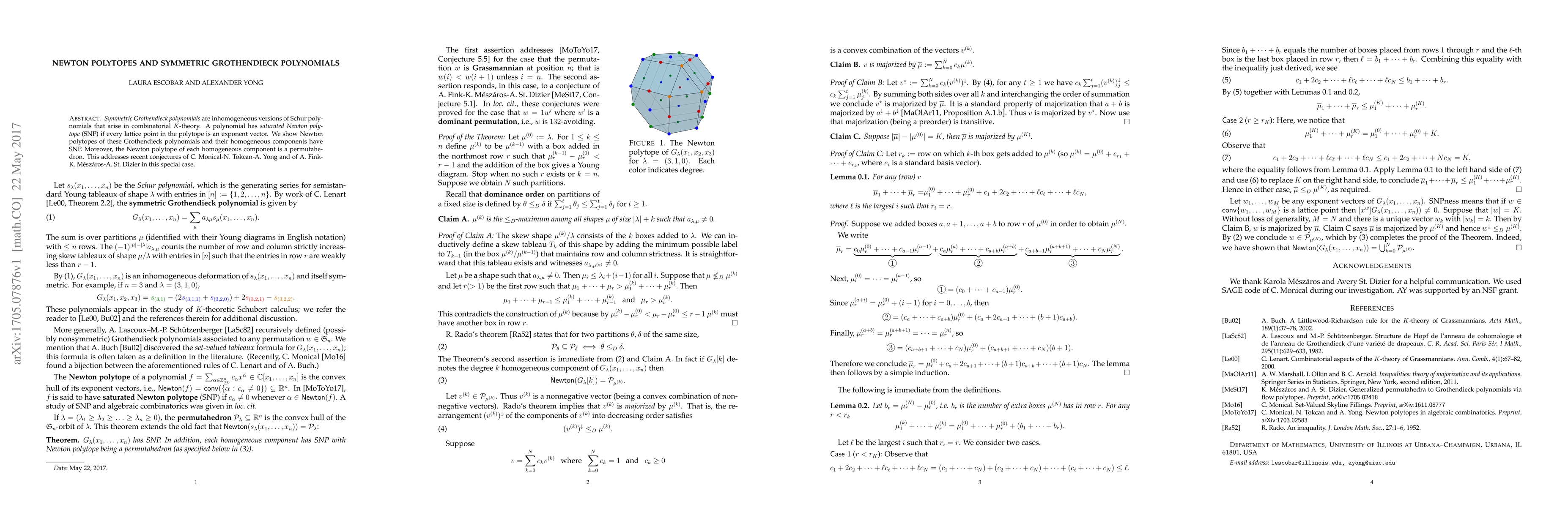This research demonstrates that symmetric Grothendieck polynomials possess saturated Newton polytopes (SNP), with each homogeneous component's polytope being a permutahedron, addressing conjectures by Monical-Tokcan-Yong and Fink-Mészároš-St. Dizier. This result confirms the SNP property for these combinatorial K-theory polynomials.