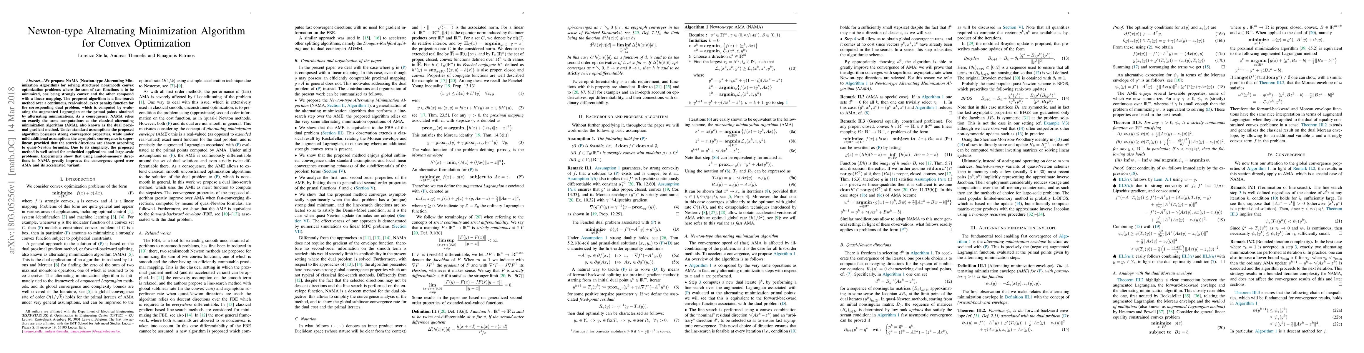 The paper proposes NAMA, a Newton-type Alternating Minimization Algorithm for solving structured nonsmooth convex optimization problems. The algorithm exhibits strong convergence properties and can achieve superlinear convergence under mild additional assumptions, making it suitable for embedded applications and large-scale problems.