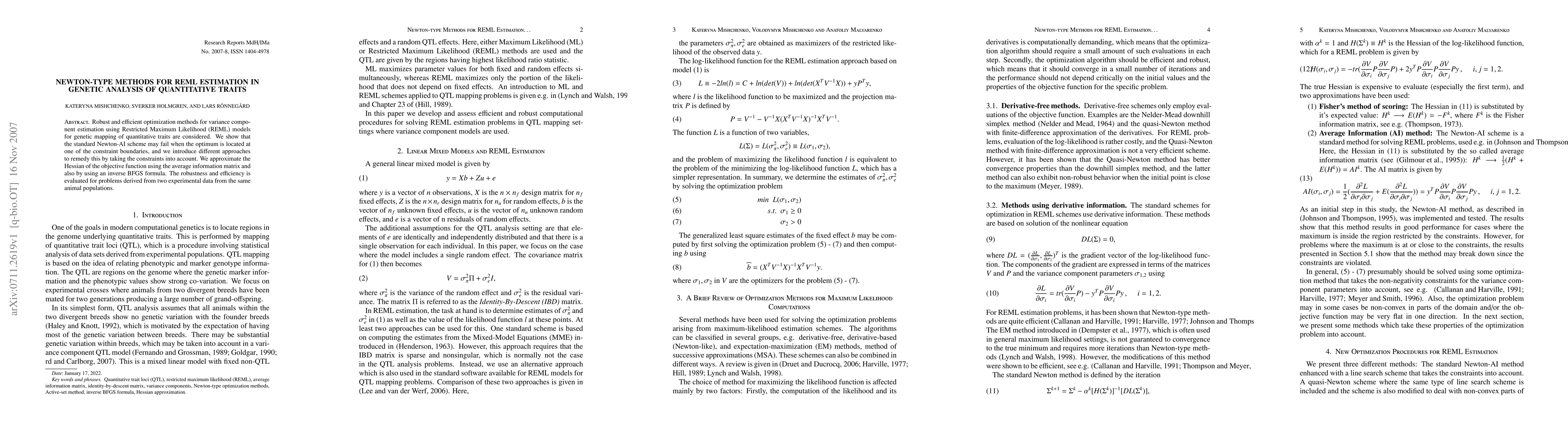 Robust and efficient optimization methods for variance component estimation using Restricted Maximum Likelihood (REML) models for genetic mapping of quantitative traits are considered. We show that the standard Newton-AI scheme may fail when the optimum is located at one of the constraint boundaries, and we introduce different approaches to remedy this by taking the constraints into account. We approximate the Hessian of the objective function using the average information matrix and also by using an inverse BFGS formula. The robustness and efficiency is evaluated for problems derived from two experimental data from the same animal populations.