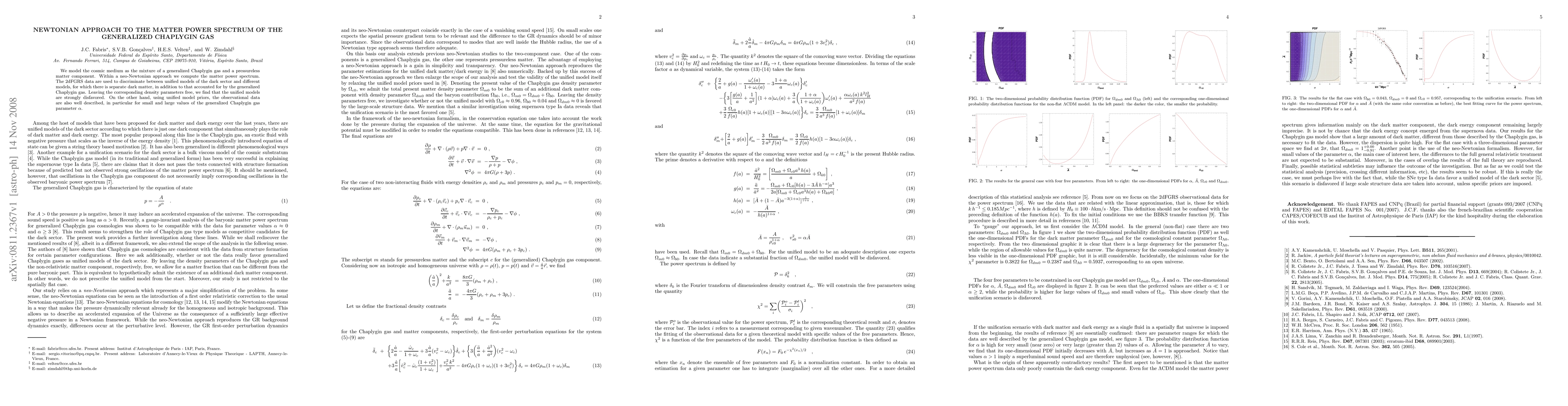 This paper models the cosmic medium using a generalized Chaplygin gas mixed with pressureless matter, computing the matter power spectrum via a neo-Newtonian approach. It finds that unified models where the dark sector is a single entity are disfavored, but observational data can still be well described using these models when priors are applied.