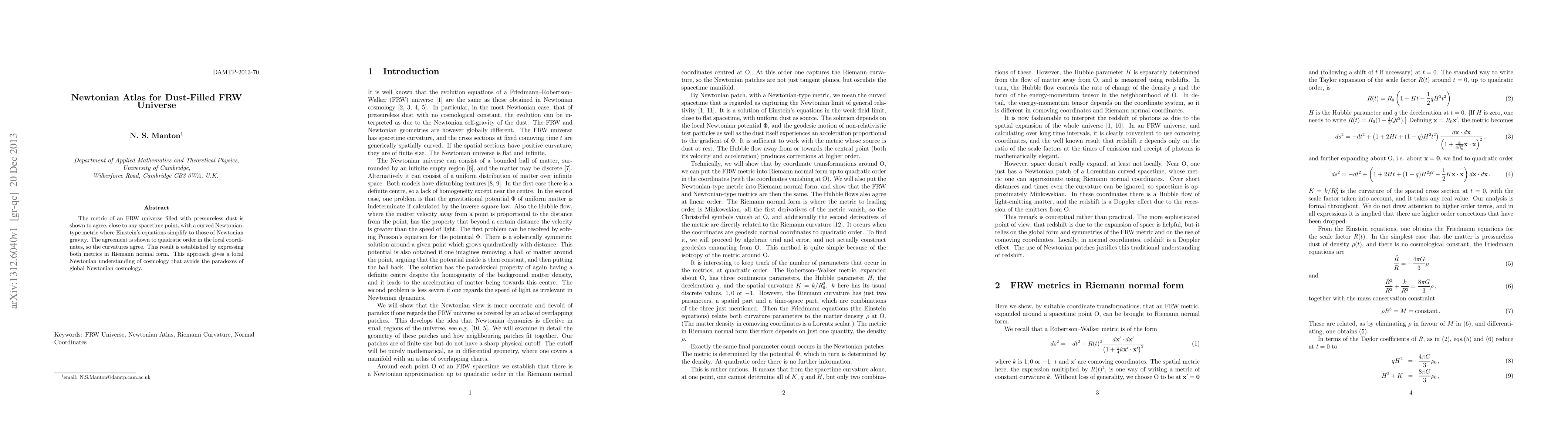 The paper demonstrates that an FRW universe filled with pressureless dust locally approximates a curved Newtonian metric, simplifying Einstein's equations to Newtonian gravity, with agreement up to quadratic order in local coordinates. This local Newtonian understanding resolves global paradoxes in traditional Newtonian cosmology.