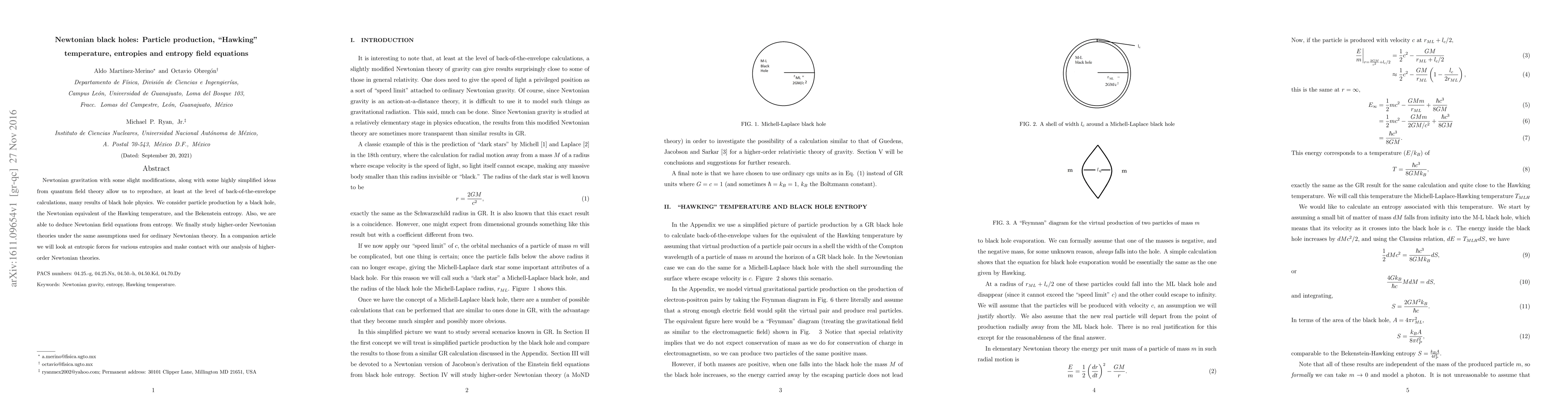 Newtonian gravitation with some slight modifications, along with some highly simplified ideas from quantum field theory allow us to reproduce, at least at the level of back-of-the-envelope calculations, many results of black hole physics. We consider particle production by a black hole, the Newtonian equivalent of the Hawking temperature, and the Bekenstein entropy. Also, we are able to deduce Newtonian field equations from entropy. We finally study higher-order Newtonian theories under the same assumptions used for ordinary Newtonian theory. In a companion article we will look at entropic forces for various entropies and make contact with our analysis of higher-order Newtonian theories.