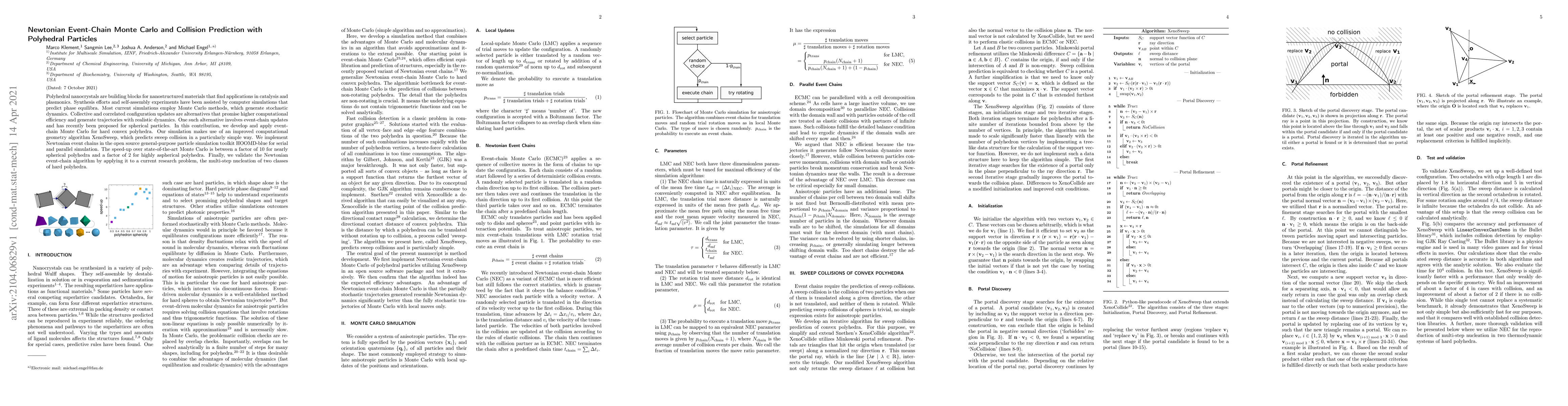 This paper develops an event-chain Monte Carlo method for simulating polyhedral nanocrystals, achieving significant speed-ups over traditional Monte Carlo methods, and demonstrates its effectiveness in predicting multi-step nucleation processes. The method utilizes an improved computational geometry algorithm for efficient collision prediction.