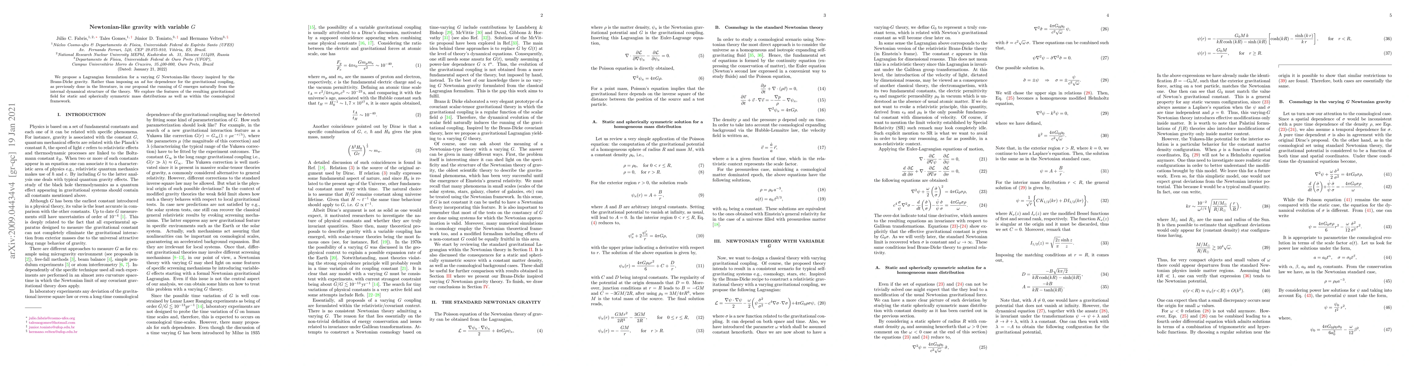 This paper proposes a Lagrangian formulation for a Newtonian-like theory with a variable gravitational constant $G$, emerging naturally from the theory's internal dynamics rather than through ad hoc assumptions. The study examines the gravitational field's behavior for static, spherically symmetric masses and within a cosmological context.