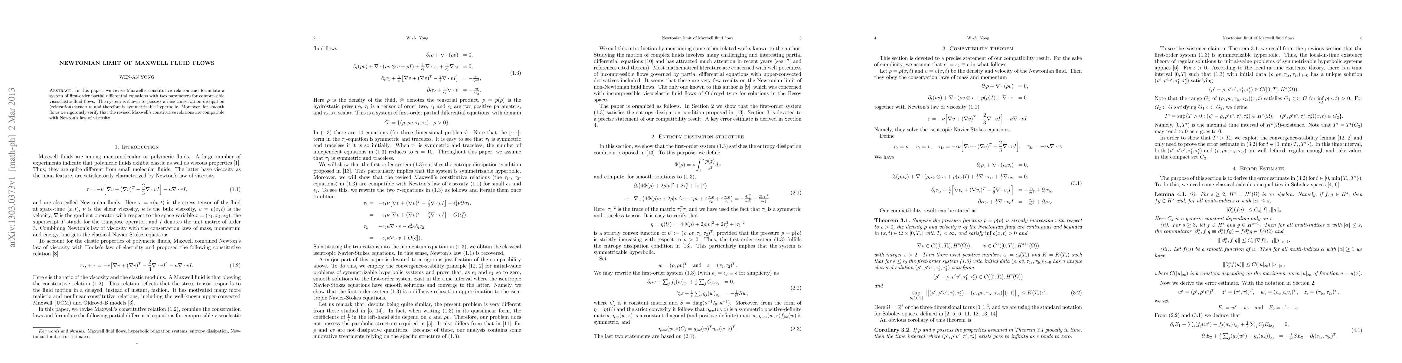 In this paper, we revise Maxwell's constitutive relation and formulate a system of first-order partial differential equations with two parameters for compressible viscoelastic fluid flows. The system is shown to possess a nice conservation-dissipation (relaxation) structure and therefore is symmetrizable hyperbolic. Moreover, for smooth flows we rigorously verify that the revised Maxwell's constitutive relations are compatible with Newton's law of viscosity.