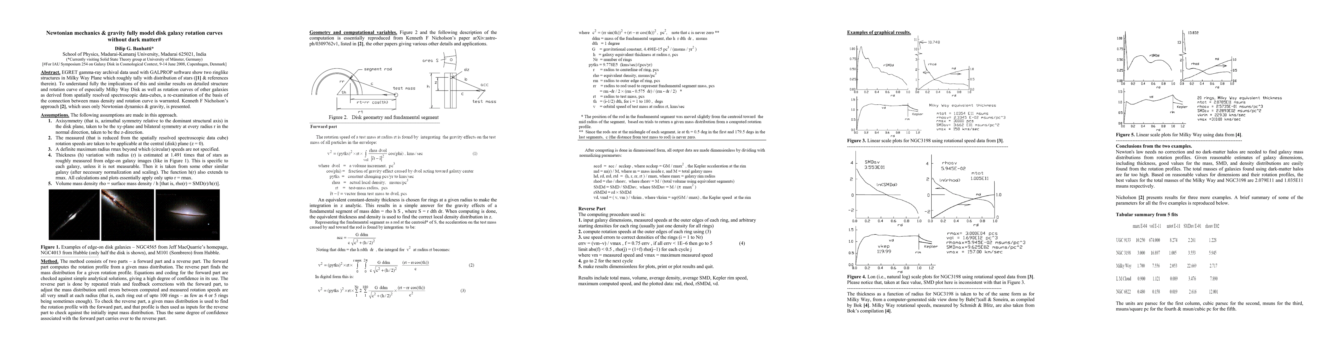 EGRET gamma-ray archival data used with GALPROP software show two ringlike structures in Milky Way Plane which roughly tally with distribution of stars ([1] & references therein). To understand fully the implications of this and similar results on detailed structure and rotation curve of especially Milky Way Disk as well as rotation curves of other galaxies as derived from spatially resolved spectroscopic data-cubes, a re-examination of the basis of the connection between mass density and rotation curve is warranted. Kenneth F. Nicholson's approach [2], which uses only Newtonian dynamics & gravity, is presented.