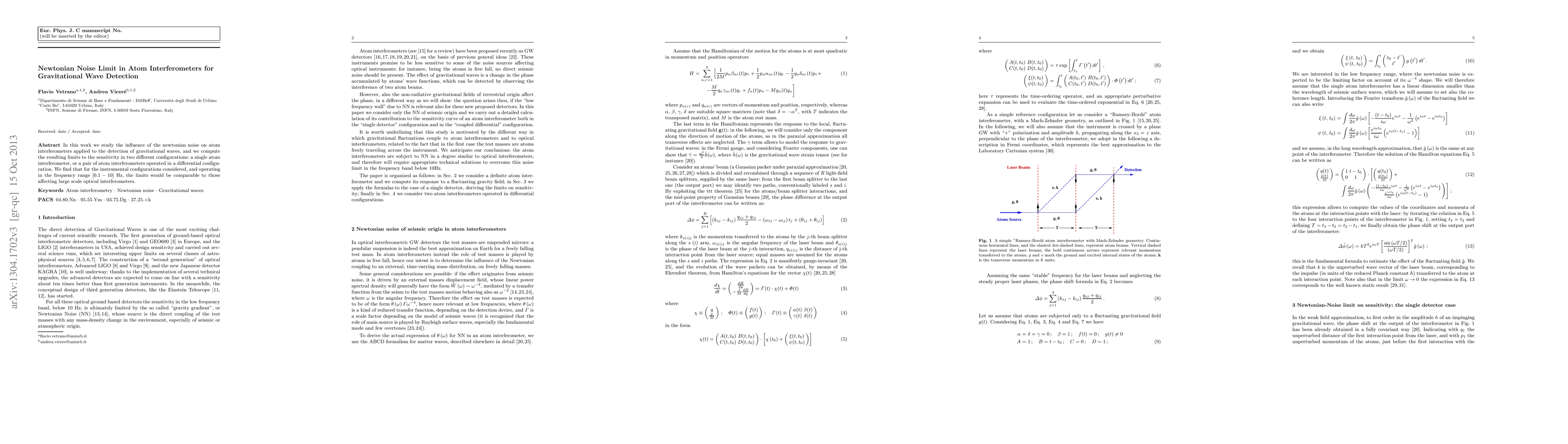 A theoretical framework was developed to quantify the impact of newtonian noise on atom interferometry for gravitational wave detection.