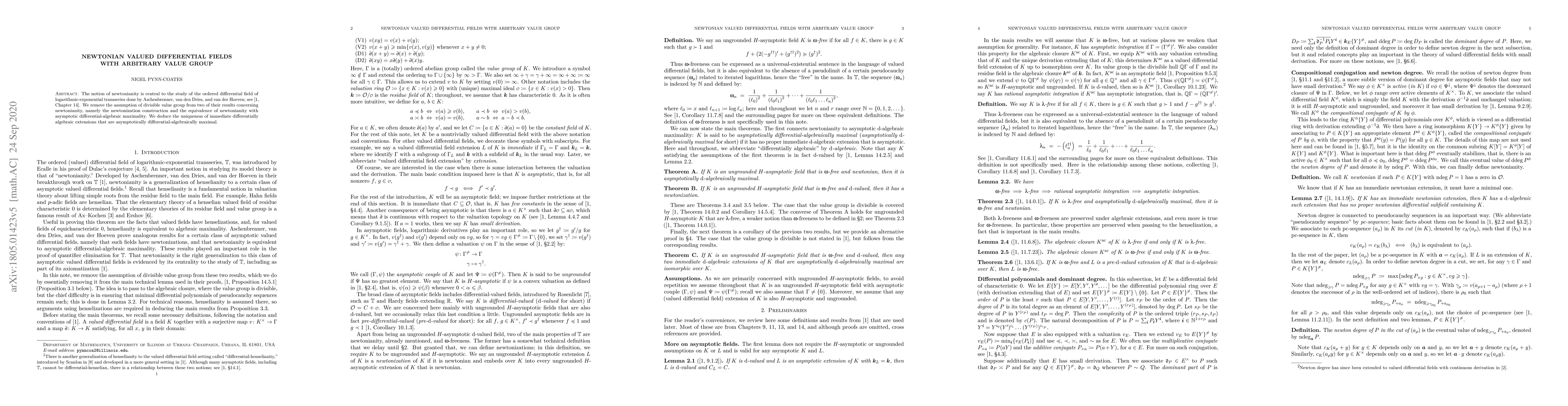The notion of newtonianity is central to the study of the ordered differential field of logarithmic-exponential transseries done by Aschenbrenner, van den Dries, and van der Hoeven; see Chapter 14 of arxiv:1509.02588. We remove the assumption of divisible value group from two of their results concerning newtonianity, namely the newtonization construction and the equivalence of newtonianity with asymptotic differential-algebraic maximality. We deduce the uniqueness of immediate differentially algebraic extensions that are asymptotically differential-algebraically maximal.