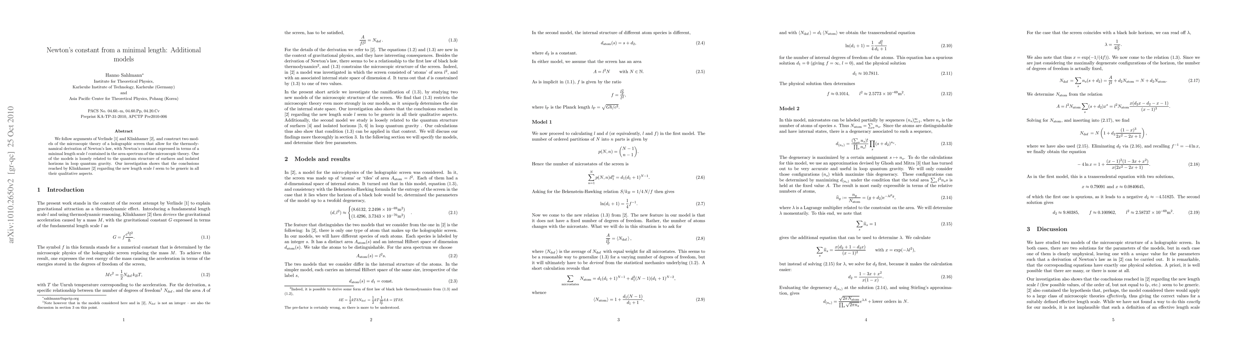 This paper constructs two models to derive Newton's law from a microscopic theory, expressing Newton's constant in terms of a minimal length scale. One model relates to the quantum structure of surfaces in loop quantum gravity, confirming Klinkhamer's findings on a new length scale.