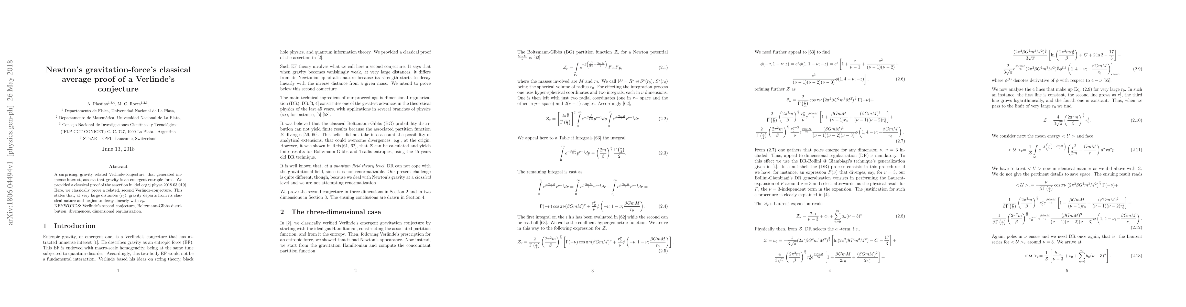 A surprising, gravity related Verlinde-conjecture, that generated immense interest, asserts that gravity is an emergent entropic force. We provided a classical proof of the assertion in [doi.org/j.physa.2018.03.019]. Here, we classically prove a related, second Verlinde-conjecture. This states that, at very large distances ($r_0$), gravity departs from its classical nature and begins to decay linearly with $r_0$.