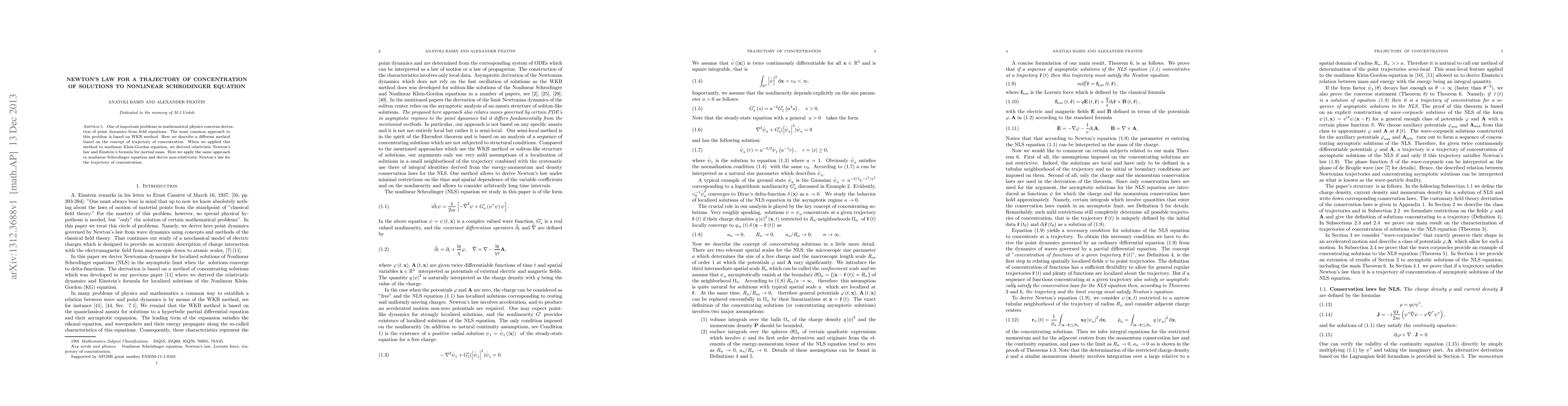 One of important problems in mathematical physics concerns derivation of point dynamics from field equations. The most common approach to this problem is based on WKB method. Here we describe a different method based on the concept of trajectory of concentration. When we applied this method to nonlinear Klein-Gordon equation, we derived relativistic Newton's law and Einstein's formula for inertial mass. Here we apply the same approach to nonlinear Schrodinger equation and derive non-relativistic Newton's law for the trajectory of concentration.