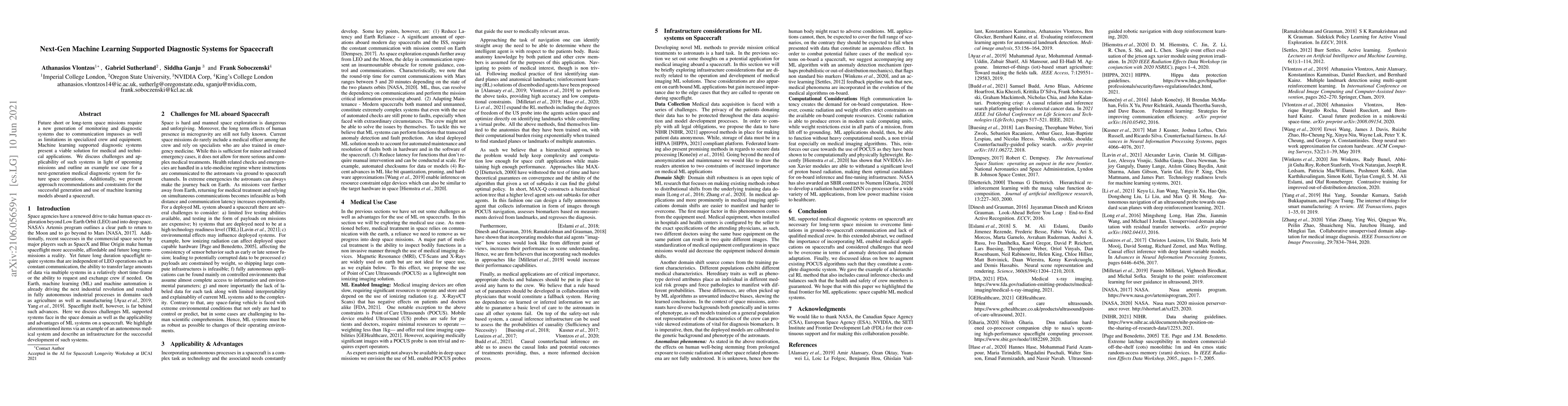 Future short or long-term space missions require a new generation of monitoring and diagnostic systems due to communication impasses as well as limitations in specialized crew and equipment. Machine learning supported diagnostic systems present a viable solution for medical and technical applications. We discuss challenges and applicability of such systems in light of upcoming missions and outline an example use case for a next-generation medical diagnostic system for future space operations. Additionally, we present approach recommendations and constraints for the successful generation and use of machine learning models aboard a spacecraft.