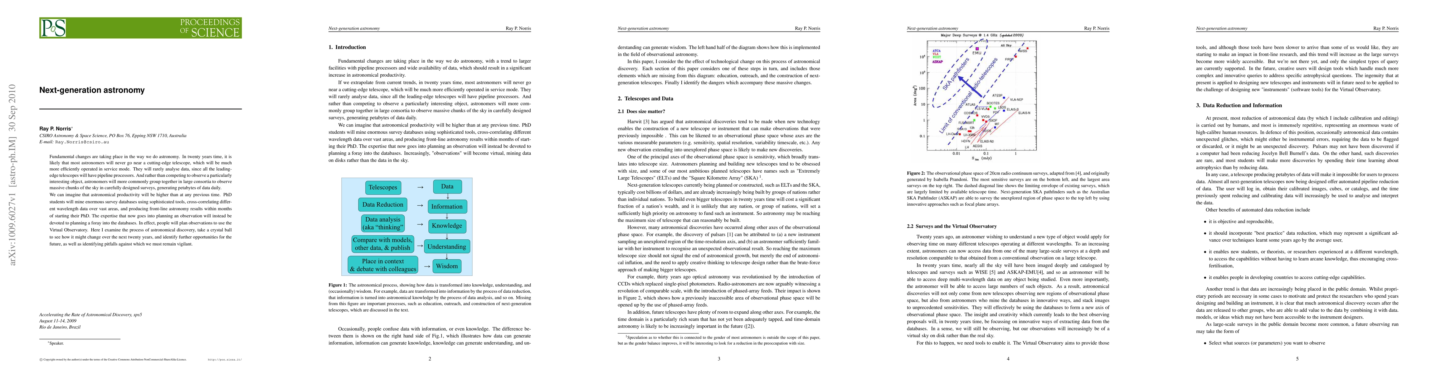 Astronomers may rely less on telescopes and more on pipeline processors and virtual observatories to analyze vast amounts of data. Over the next 20 years, productivity could increase as PhD students mine survey databases to produce groundbreaking results in a shorter timeframe.