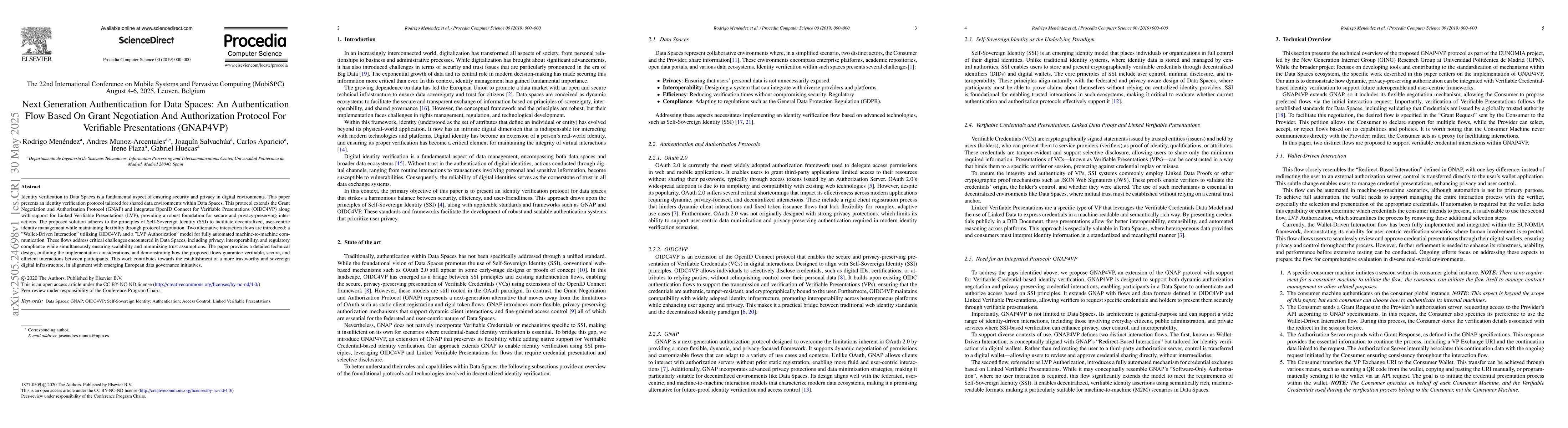 Identity verification in Data Spaces is a fundamental aspect of ensuring security and privacy in digital environments. This paper presents an identity verification protocol tailored for shared data environments within Data Spaces. This protocol extends the Grant Negotiation and Authorization Protocol (GNAP) and integrates OpenID Connect for Verifiable Presentations (OIDC4VP) along with support for Linked Verifiable Presentations (LVP), providing a robust foundation for secure and privacy-preserving interactions. The proposed solution adheres to the principles of Self-Sovereign Identity (SSI) to facilitate decentralized, user-centric identity management while maintaining flexibility through protocol negotiation. Two alternative interaction flows are introduced: a "Wallet-Driven Interaction" utilizing OIDC4VP, and a "LVP Authorization" model for fully automated machine-to-machine communication. These flows address critical challenges encountered in Data Spaces, including privacy, interoperability, and regulatory compliance while simultaneously ensuring scalability and minimizing trust assumptions. The paper provides a detailed technical design, outlining the implementation considerations, and demonstrating how the proposed flows guarantee verifiable, secure, and efficient interactions between participants. This work contributes towards the establishment of a more trustworthy and sovereign digital infrastructure, in alignment with emerging European data governance initiatives.