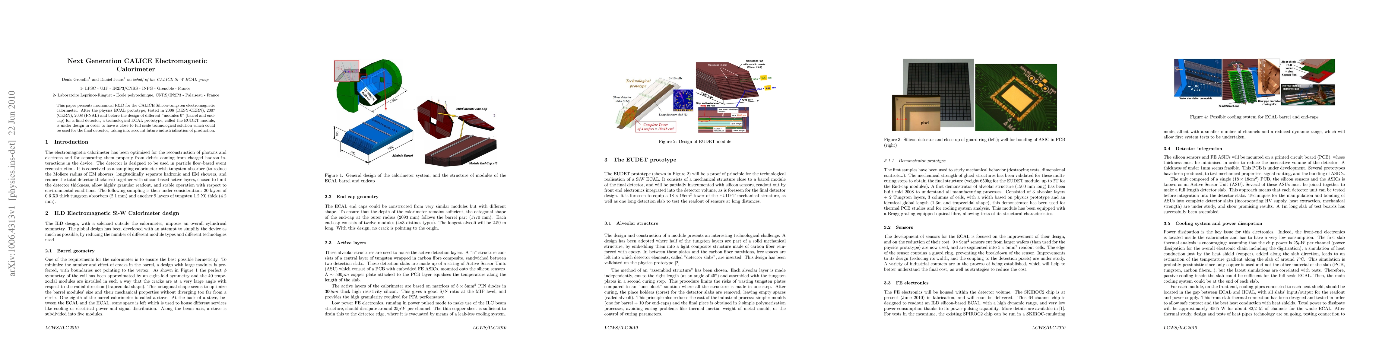 This paper presents mechanical R&D for the CALICE Silicon-tungsten electromagnetic calorimeter. After the physics ECAL prototype, tested in 2006 (DESY-CERN), 2007 (CERN), 2008 (FNAL) and before the design of different "modules 0" (barrel and endcap) for a final detector, a technological ECAL prototype, called the EUDET module, is under design in order to have a close to full scale technological solution which could be used for the final detector, taking into account future industrialisation of production.
