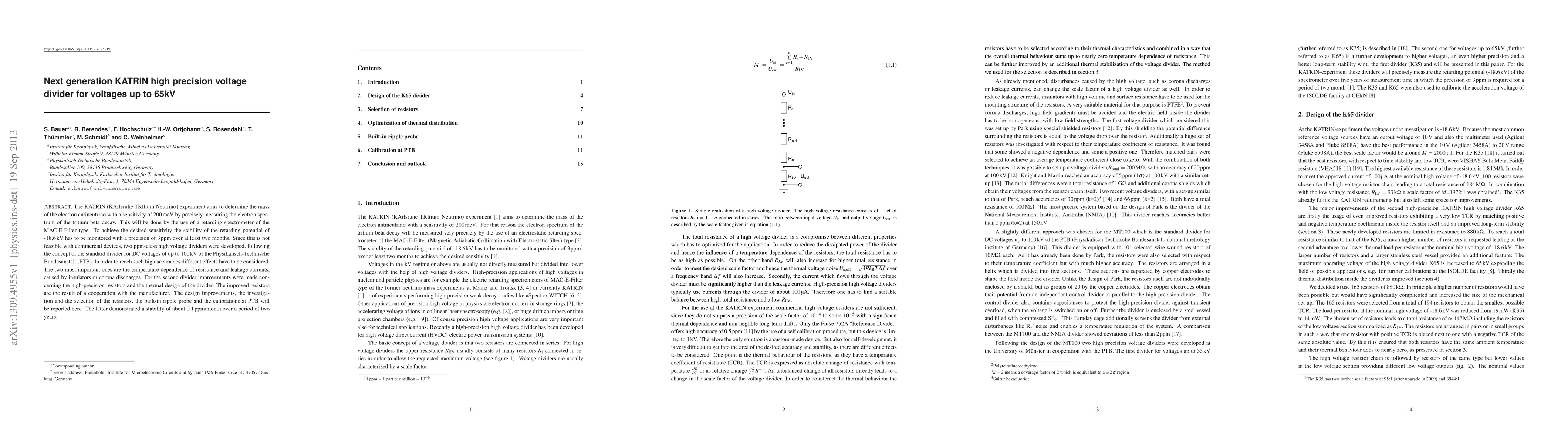 The KATRIN experiment aims to measure the electron antineutrino mass with high precision using a MAC-E-Filter spectrometer. To achieve this, two high-precision voltage dividers for up to 65kV were developed to monitor the retarding potential stability at 3ppm over long periods, addressing temperature dependence and leakage currents.