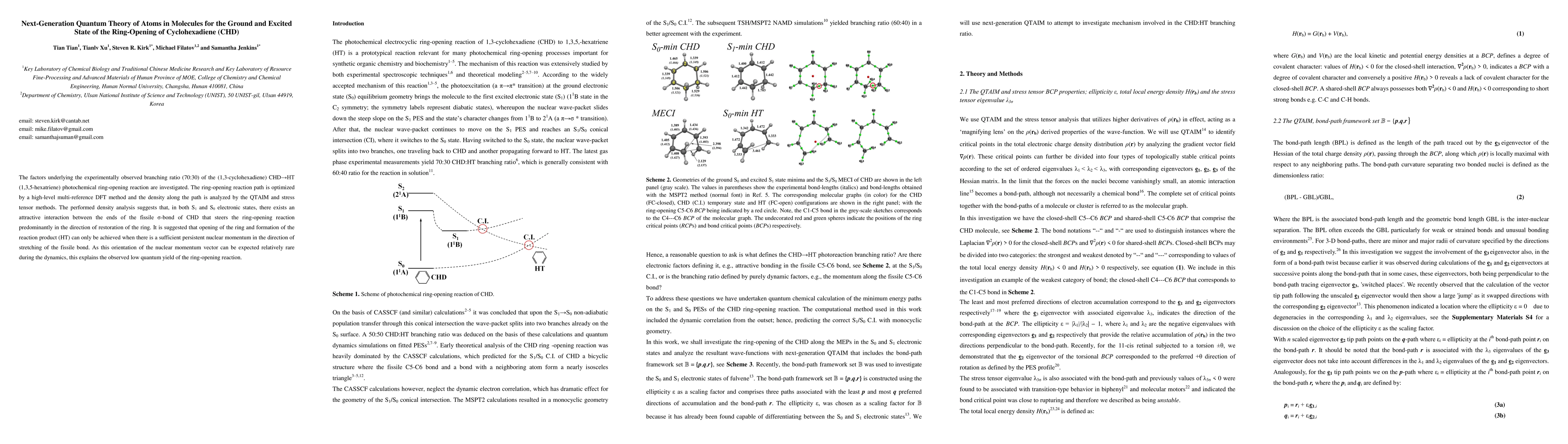 The factors underlying the experimentally observed branching ratio (70:30) of the (1,3-cyclohexadiene) CHD$\rightarrow$HT (1,3,5-hexatriene) photochemical ring-opening reaction are investigated. The ring-opening reaction path is optimized by a high-level multi-reference DFT method and the density along the path is analyzed by the QTAIM and stress tensor methods. The performed density analysis suggests that, in both $S_{1}$ and $S_{0}$ electronic states, there exists an attractive interaction between the ends of the fissile $\sigma$ -bond of CHD that steers the ring-opening reaction predominantly in the direction of restoration of the ring. It is suggested that opening of the ring and formation of the reaction product (HT) can only be achieved when there is a sufficient persistent nuclear momentum in the direction of stretching of the fissile bond. As this orientation of the nuclear momentum vector can be expected to be relatively rare during the dynamics, this explains the observed low quantum yield of the ring-opening reaction.