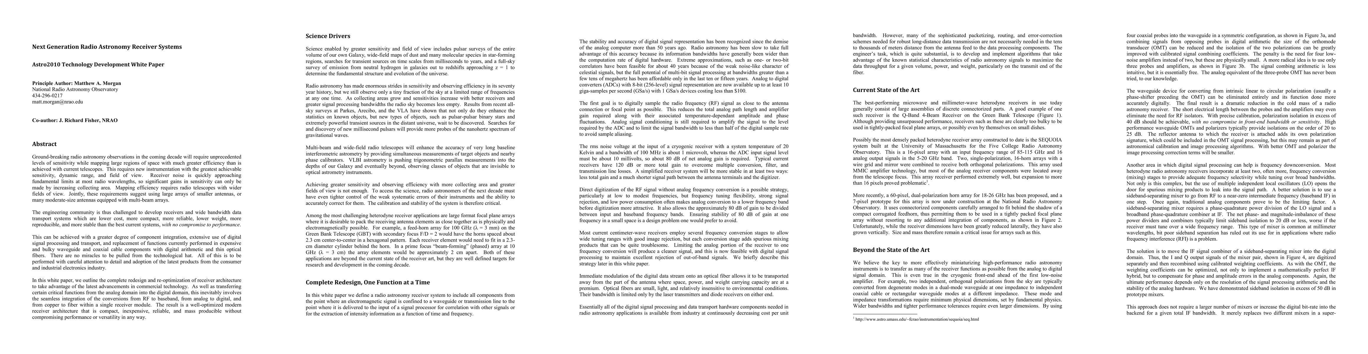 Researchers propose a new design for radio astronomy receiver systems that integrate digital signal processing and fiber optics to increase sensitivity while reducing cost, size, and weight. The goal is to enable more efficient mapping of large regions of space with greater precision.
