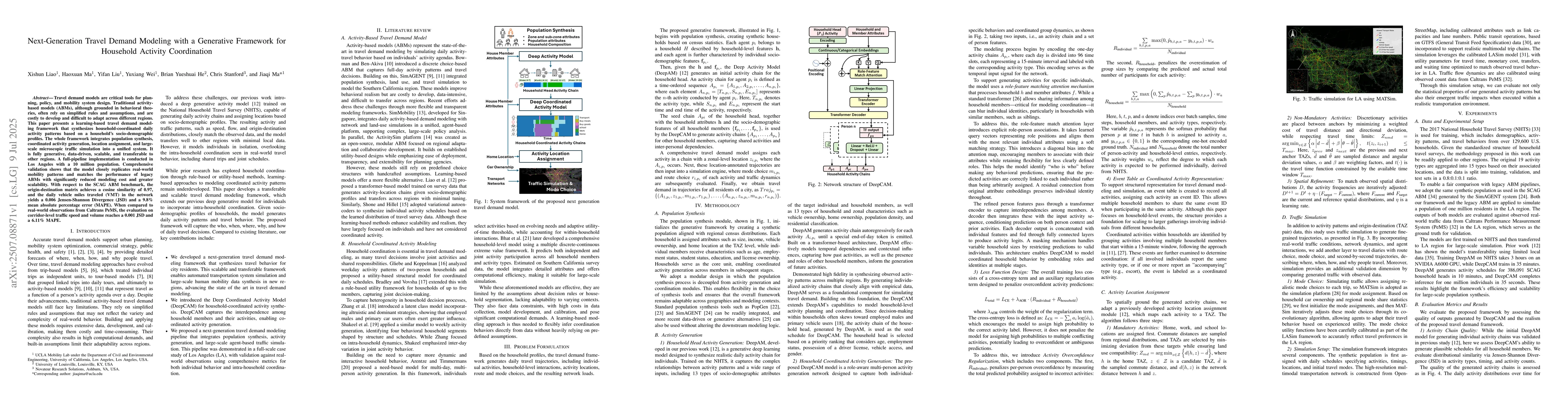 Travel demand models are critical tools for planning, policy, and mobility system design. Traditional activity-based models (ABMs), although grounded in behavioral theories, often rely on simplified rules and assumptions, and are costly to develop and difficult to adapt across different regions. This paper presents a learning-based travel demand modeling framework that synthesizes household-coordinated daily activity patterns based on a household's socio-demographic profiles. The whole framework integrates population synthesis, coordinated activity generation, location assignment, and large-scale microscopic traffic simulation into a unified system. It is fully generative, data-driven, scalable, and transferable to other regions. A full-pipeline implementation is conducted in Los Angeles with a 10 million population. Comprehensive validation shows that the model closely replicates real-world mobility patterns and matches the performance of legacy ABMs with significantly reduced modeling cost and greater scalability. With respect to the SCAG ABM benchmark, the origin-destination matrix achieves a cosine similarity of 0.97, and the daily vehicle miles traveled (VMT) in the network yields a 0.006 Jensen-Shannon Divergence (JSD) and a 9.8% mean absolute percentage error (MAPE). When compared to real-world observations from Caltrans PeMS, the evaluation on corridor-level traffic speed and volume reaches a 0.001 JSD and a 6.11% MAPE.