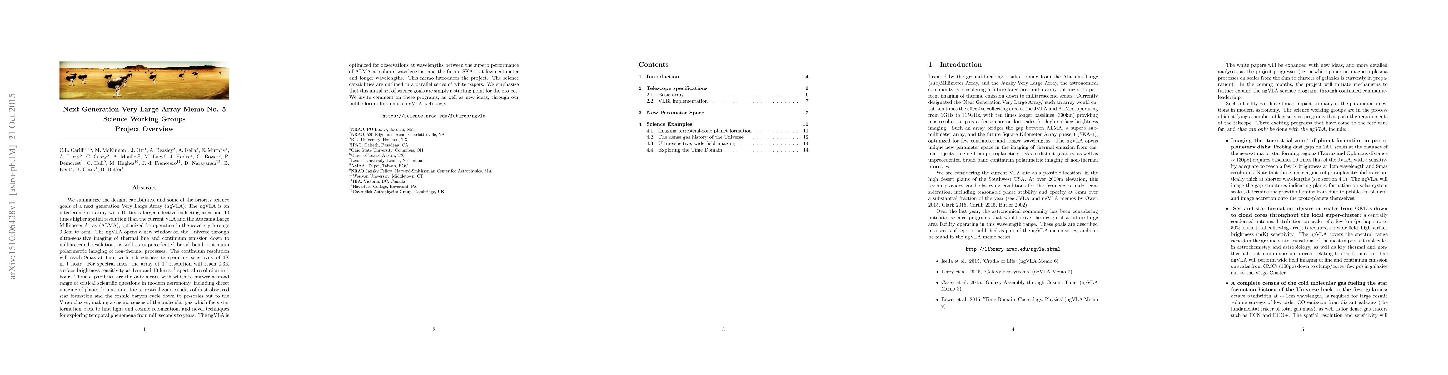 The next generation Very Large Array (ngVLA) aims to provide a 10x improvement in effective collecting area and spatial resolution over current arrays like the VLA and ALMA, enabling ultra-sensitive imaging and unprecedented broadband polarimetric imaging. The ngVLA is designed to answer critical scientific questions in modern astronomy, including planet formation, star formation studies, and cosmic reionization.