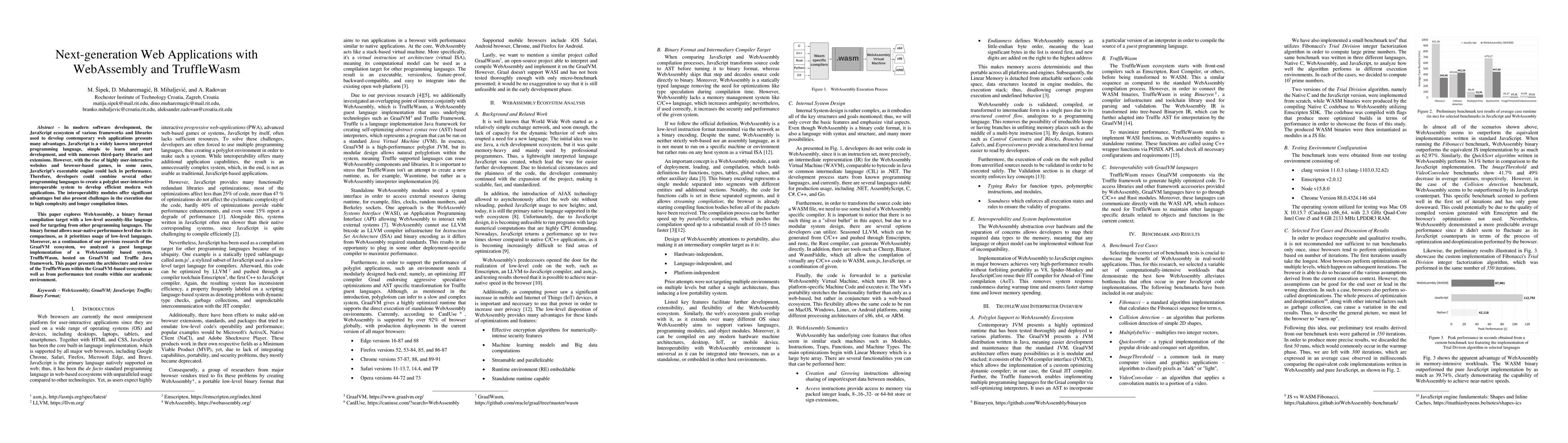 In modern software development, the JavaScript ecosystem of various frameworks and libraries used to develop contemporary web applications presents many advantages. JavaScript is a widely known interpreted programming language, simple to learn and start development, and with numerous third-party libraries and extensions. However, with the rise of highly user-interactive websites and browser-based games, in some cases, JavaScripts executable engine could lack in performance. Therefore, developers could combine several other programming languages to create a polyglot user-interactive interoperable system to develop efficient modern web applications. The interoperability modules offer significant advantages but also present challenges in the execution due to high complexity and longer compilation times. This paper explores WebAssembly, a binary format compilation target with a low-level assembly-like language used for targeting from other programming languages. The binary format allows near-native performance level due to its compactness, as it prioritizes usage of low-level languages. Moreover, as a continuation of our previous research of the GraalVM ecosystem, we analyzed a guest language implementation of a WebAssembly based system, TruffleWasm, hosted on GraalVM and Truffle Java framework. This paper presents the architecture and review of the TruffleWasm within the GraalVM-based ecosystem as well as from performance test results within our academic environment.